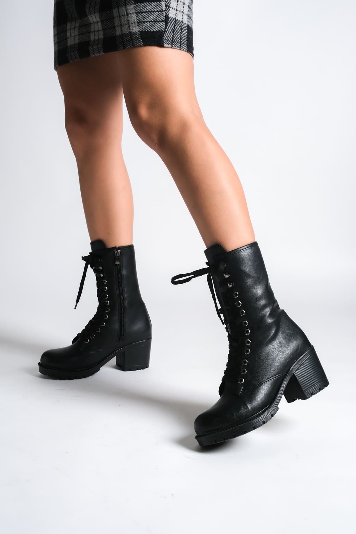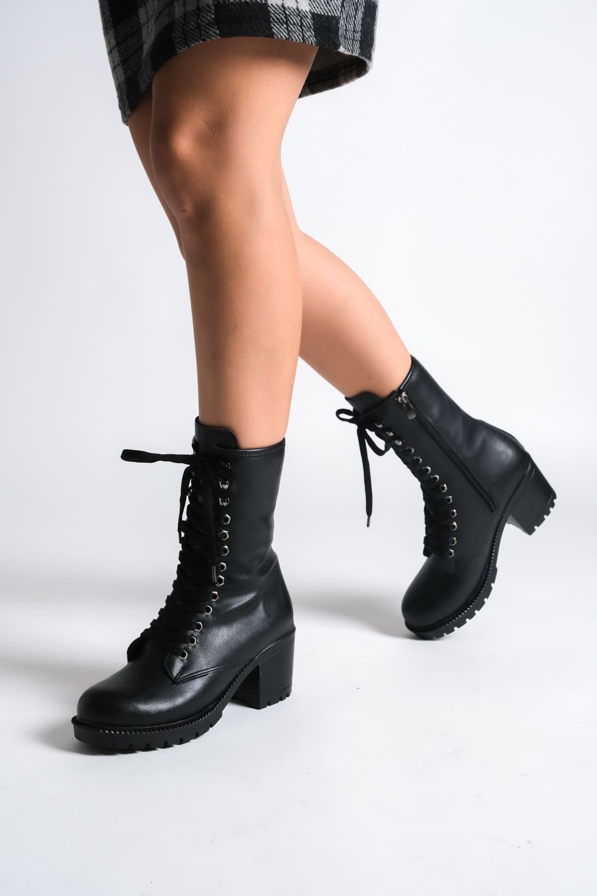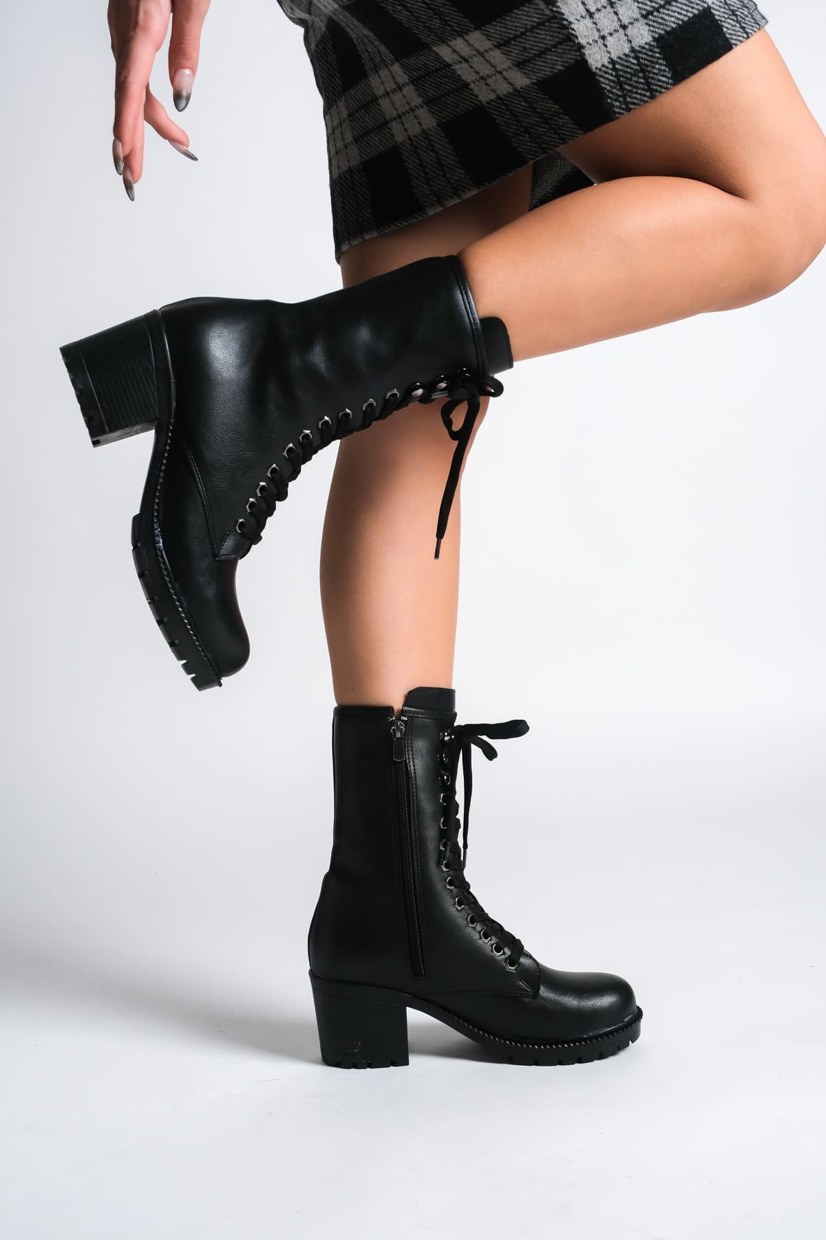 ALDA Bağcıklı Ortopedik Taban Kadın Çizme CST – Siyah