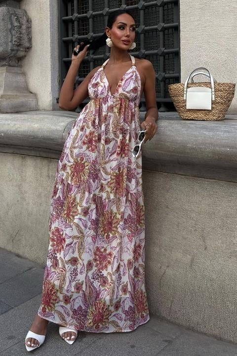 Amelia Sırt Dekolteli Şifon Elbise 2614