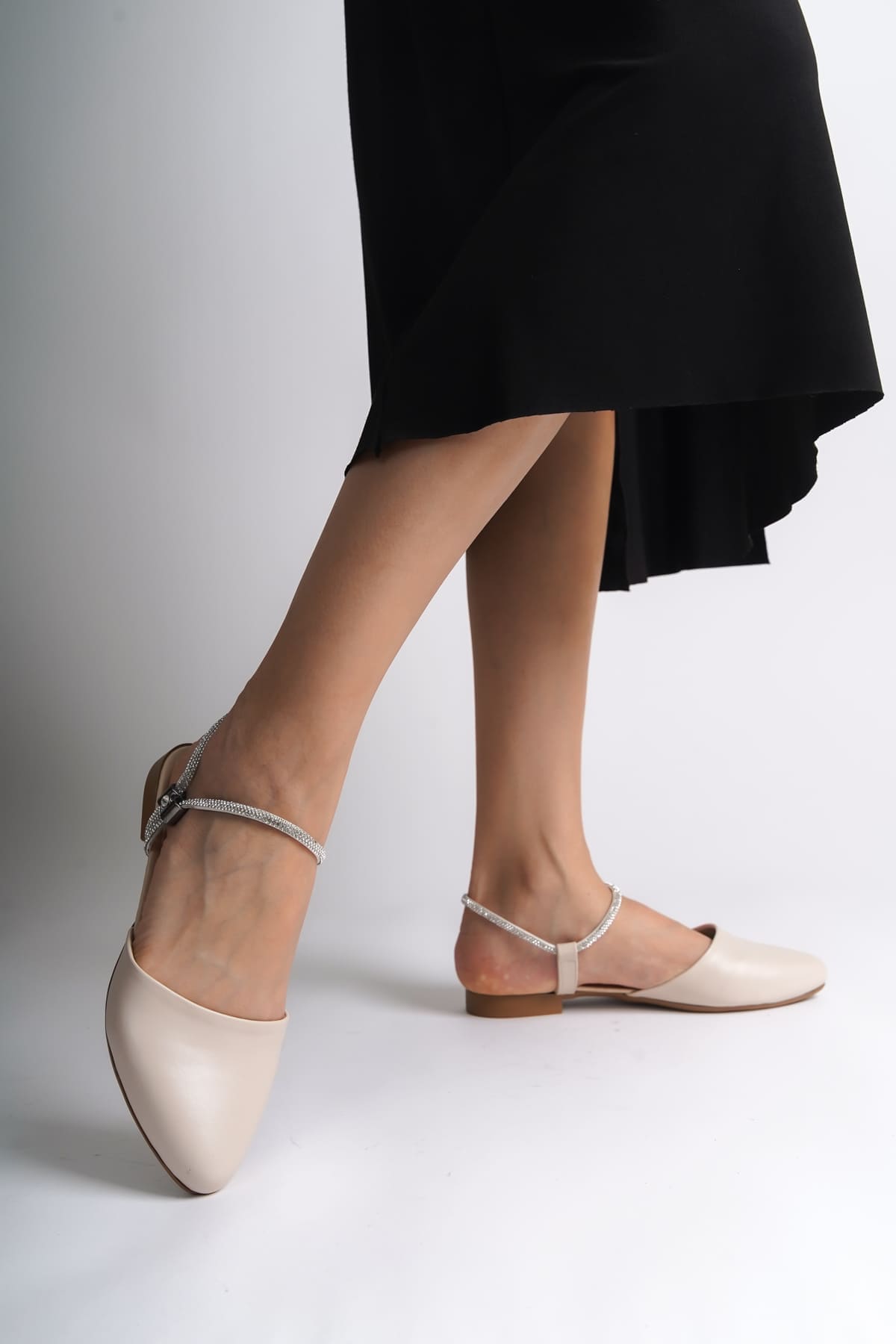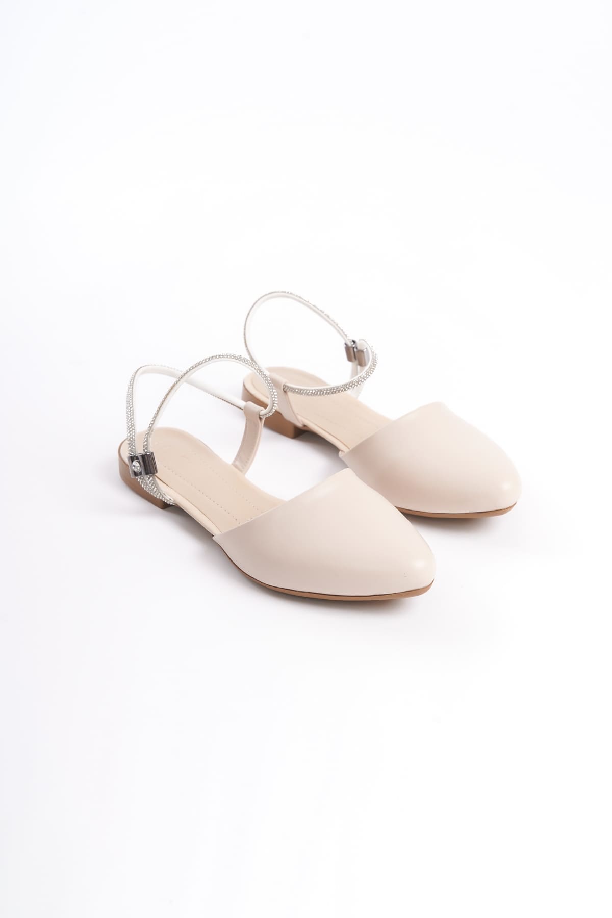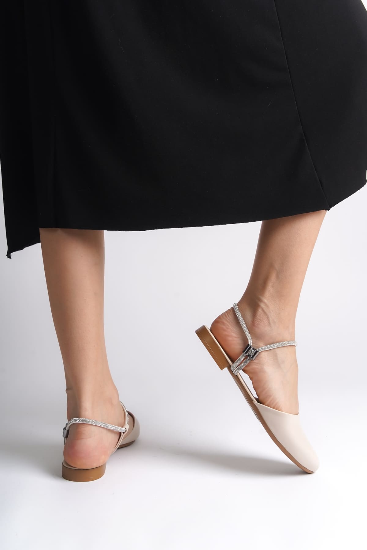 ARIANA Lastikli Ortopedik Rahat Taban Bilekten Taş Detaylı Kadın Babet Ayakkabı CKT – Krem