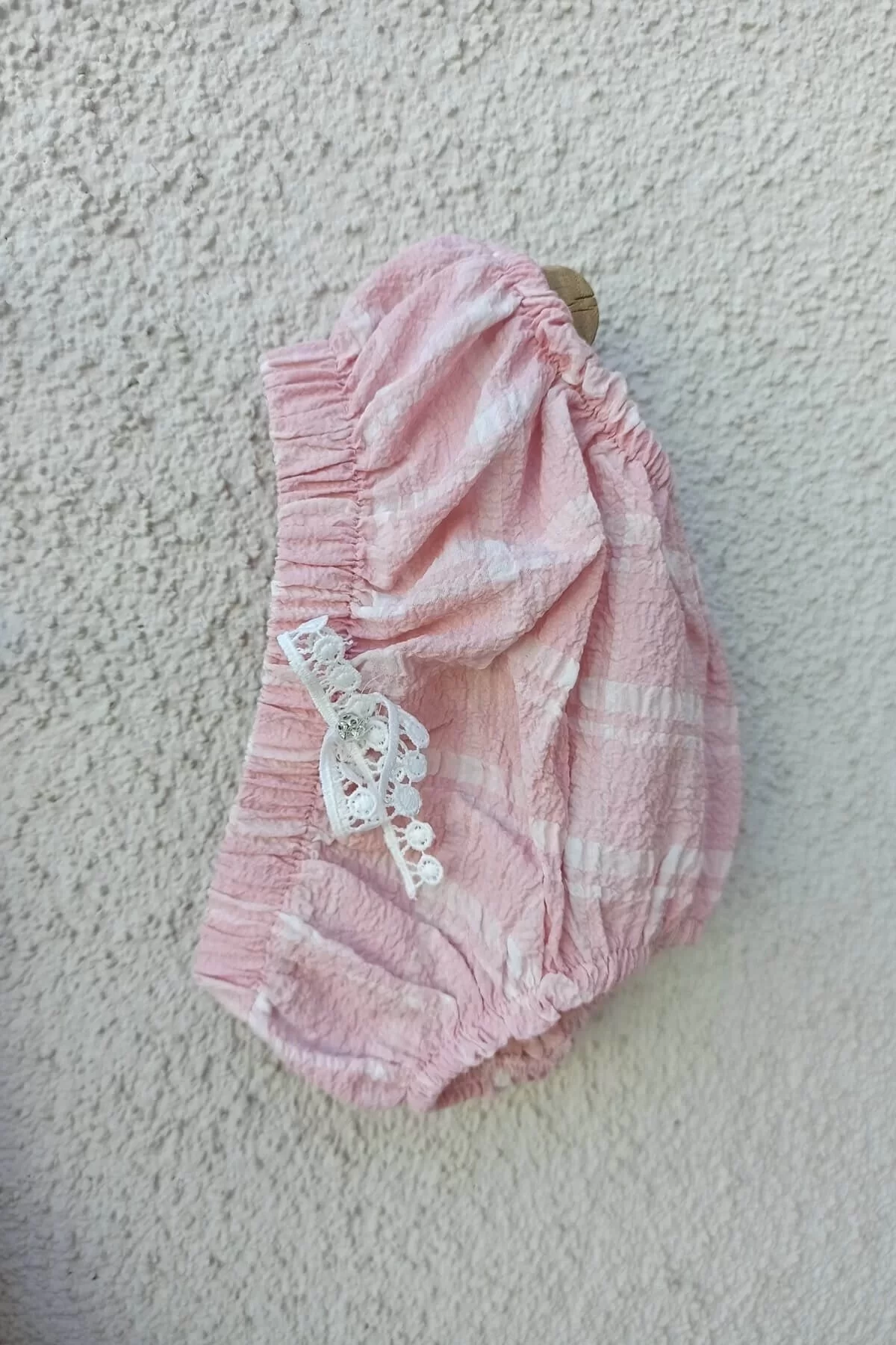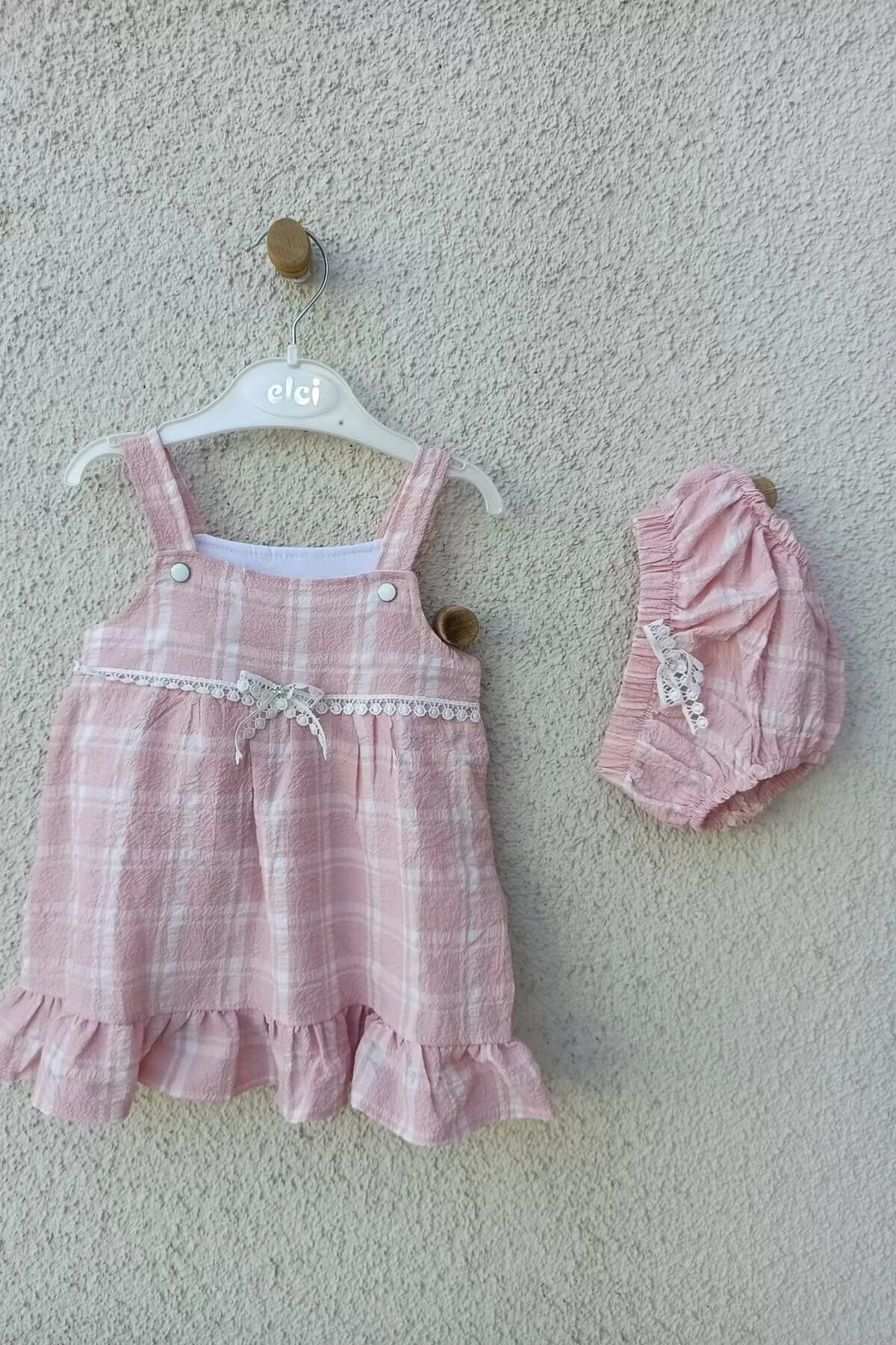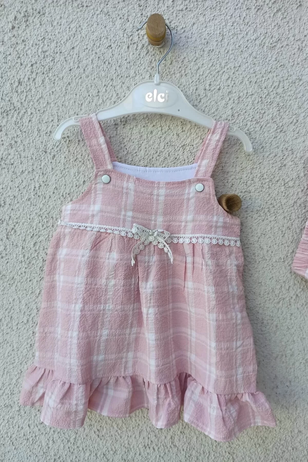 Askılı Kareli Külotlu Bebek Elbisesi 3-6-9 Ay