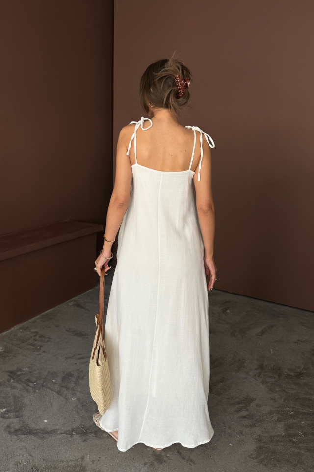 ASKILI UZUN SALAŞ MÜSLİN ELBİSE – Lacivert