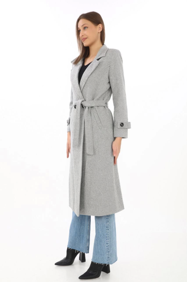Astarlı Balık Sırtı Kaşmir Kaşe Kaban – Gri