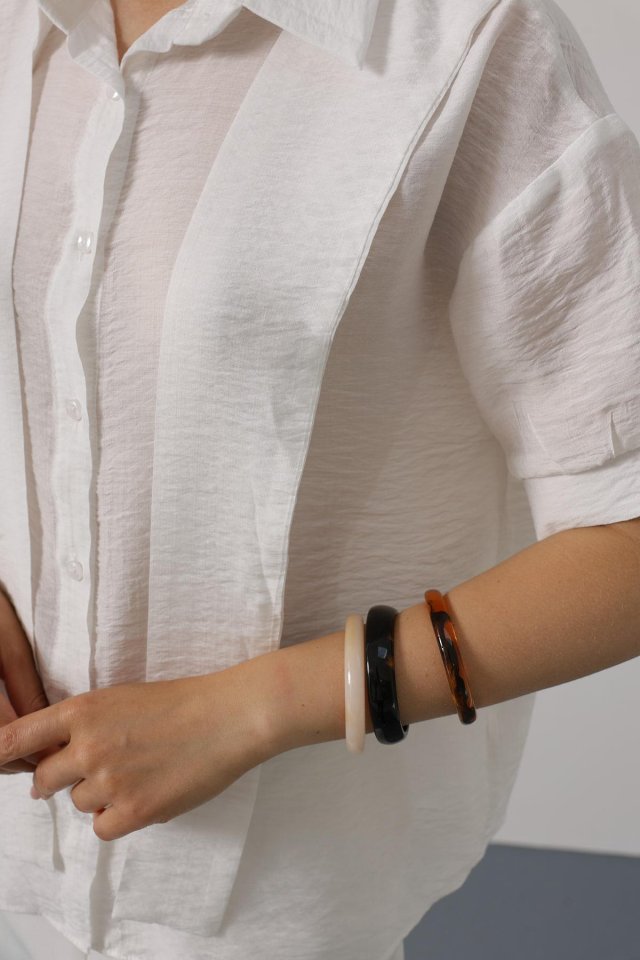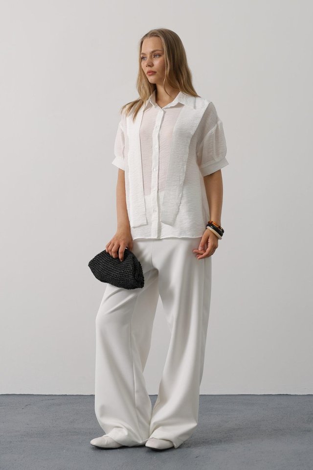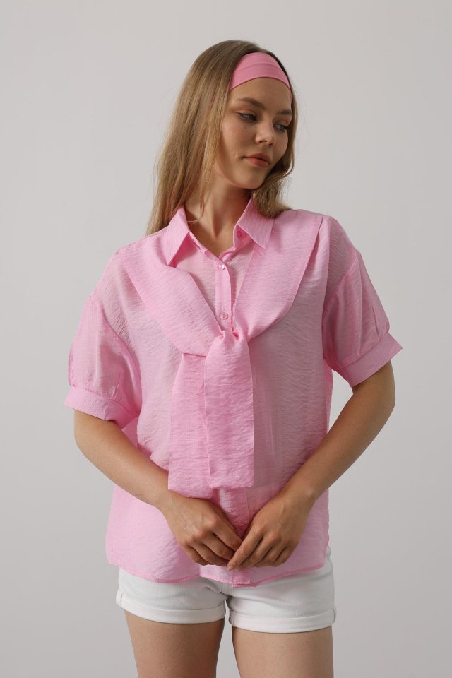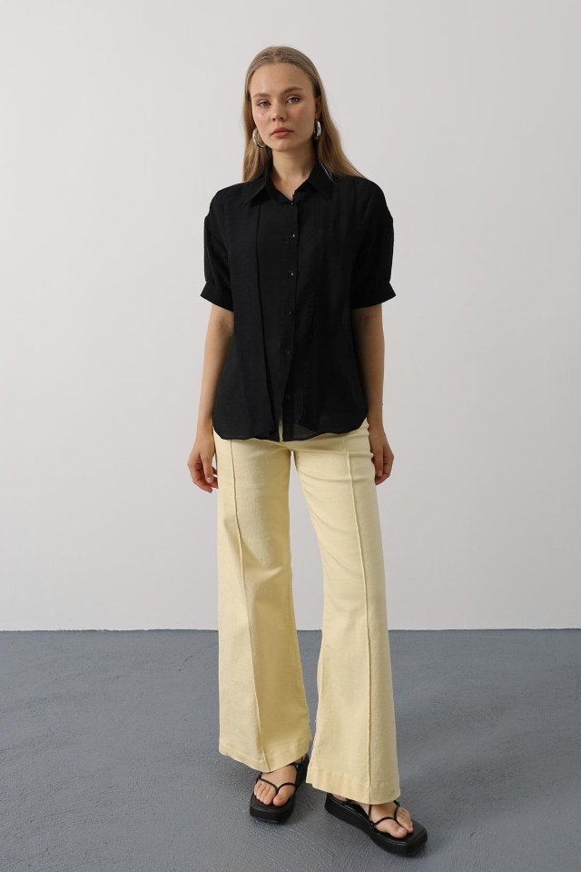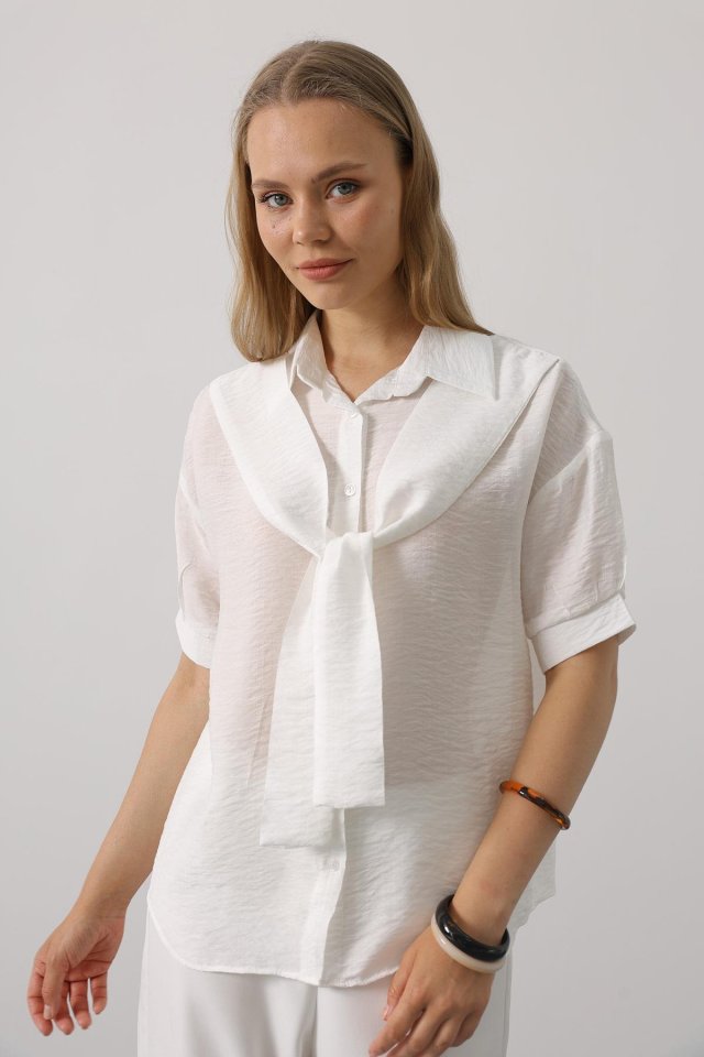 Atkı Detaylı Yarım Kol Gömlek – Siyah