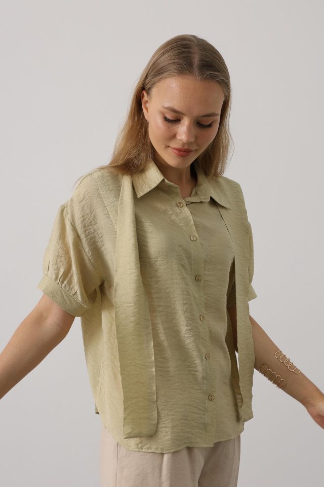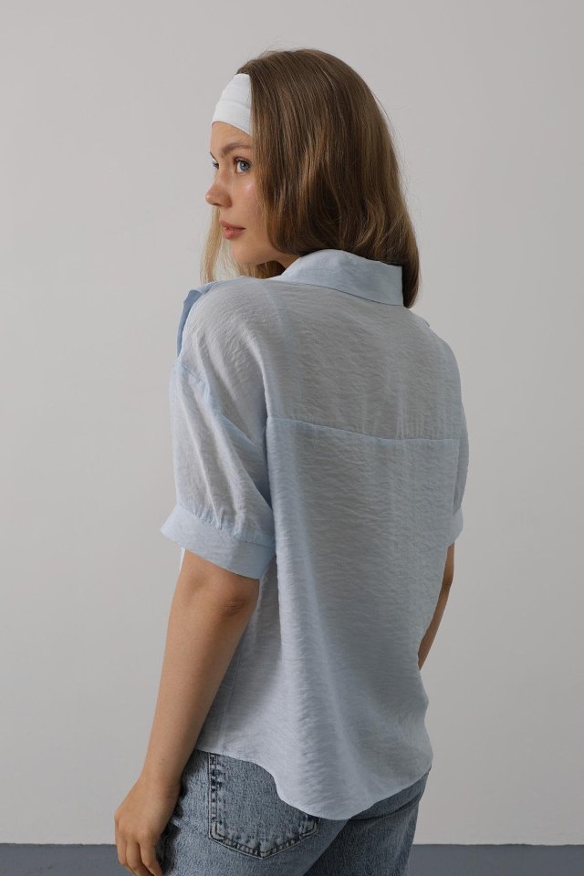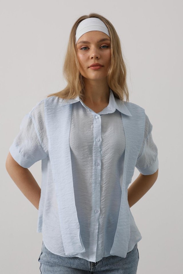 Atkı Detaylı Yarım Kol Gömlek – Bebe Mavisi