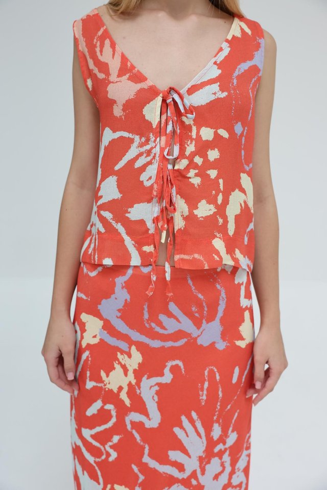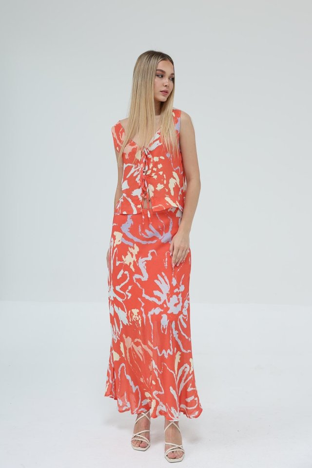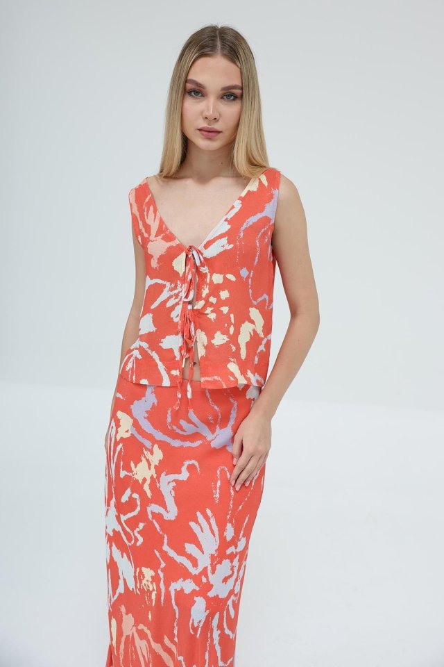 Bağcıklı Bluzlu Etek Takım – Pudra