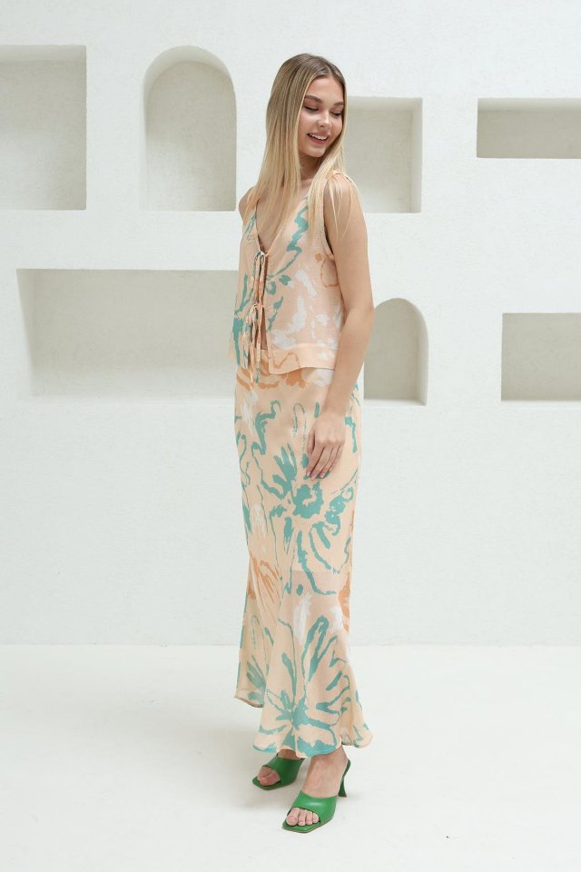 Bağcıklı Bluzlu Etek Takım – Pudra