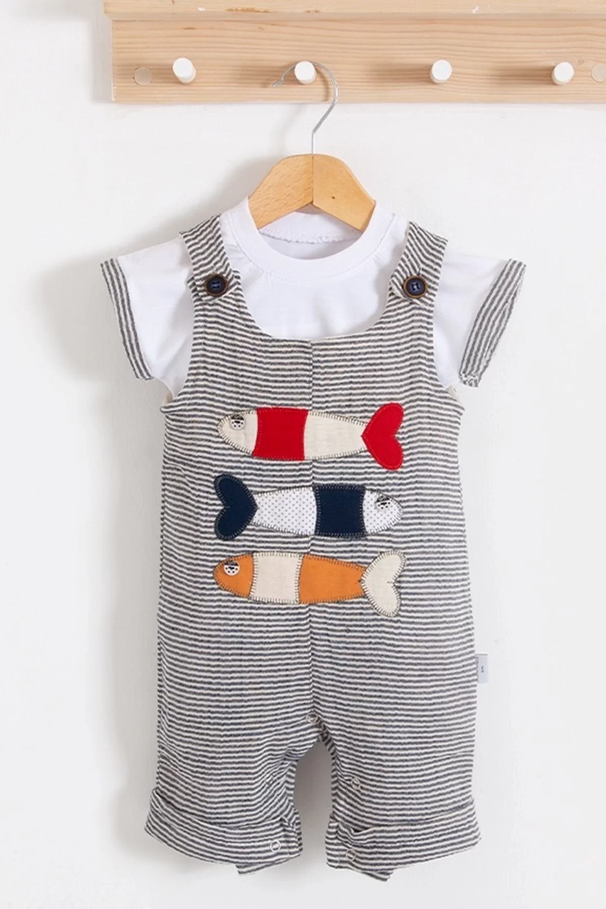 Balık Nakışlı Kısa Kollu Erkek Bebek Tulumu