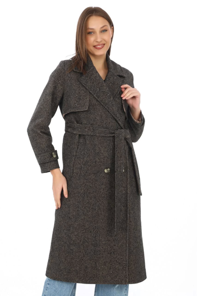 Balık Sırtı Kaşmir Uzun Kaşe Kaban – Kahverengi