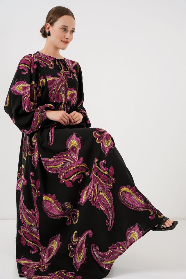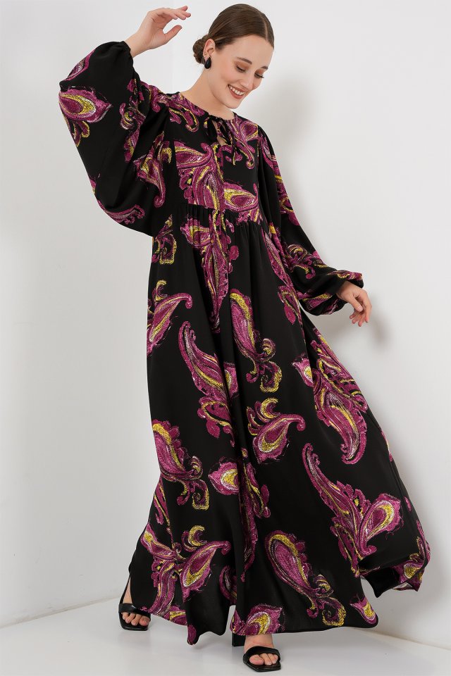 Balon Kol Uzun Tesettür Elbise 2464 – Y.Fuşya