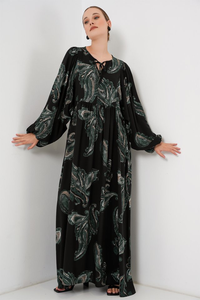 Balon Kol Uzun Tesettür Elbise 2464 – Y.Yeşil