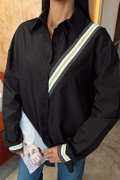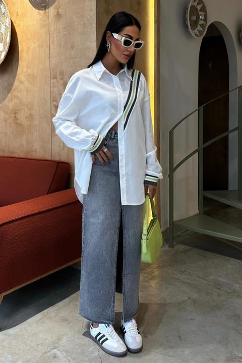 Bant Detaylı Oversize Poplin Gömlek 3436
