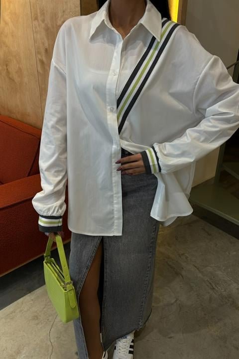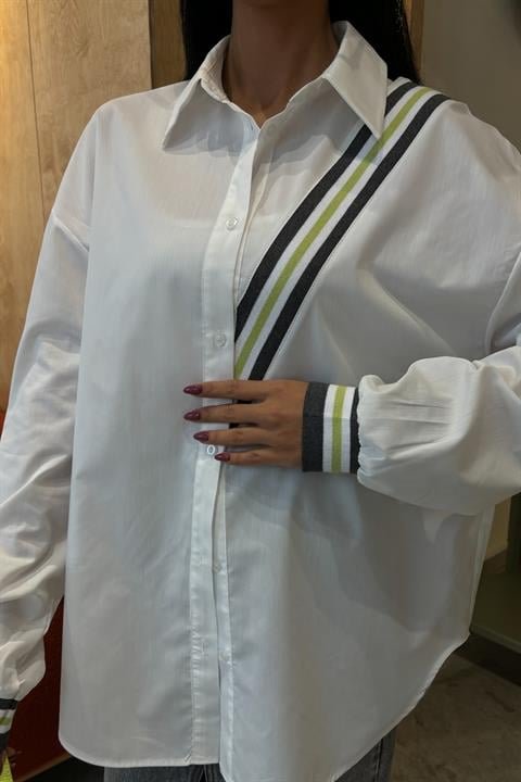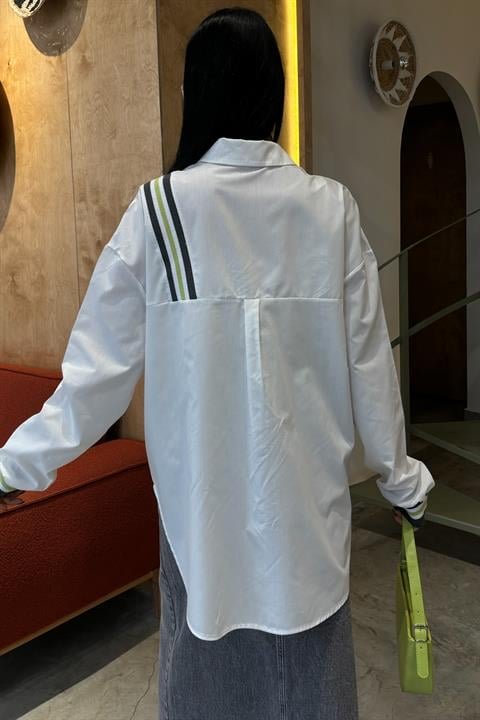 Bant Detaylı Oversize Poplin Gömlek 3436