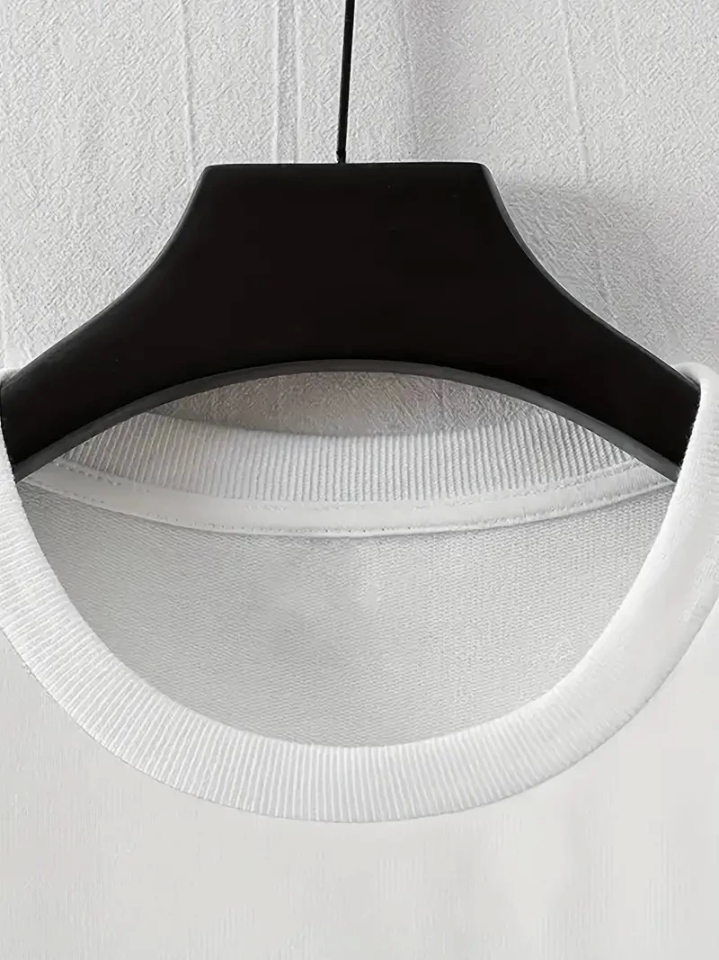 Baskılı Oversize Bisiklet Yaka T-shirt – Beyaz