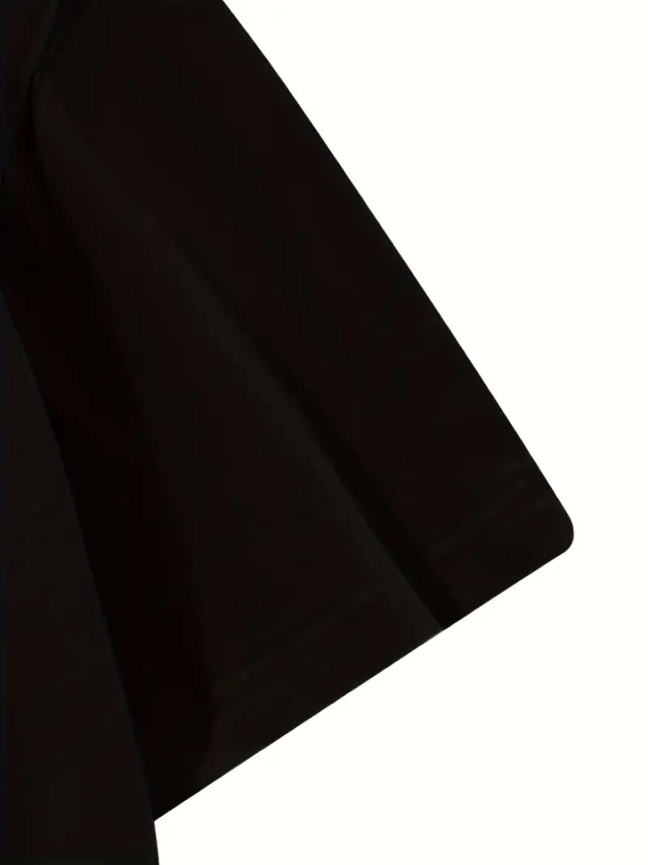Baskılı Oversize Bisiklet Yaka T-shirt – Siyah