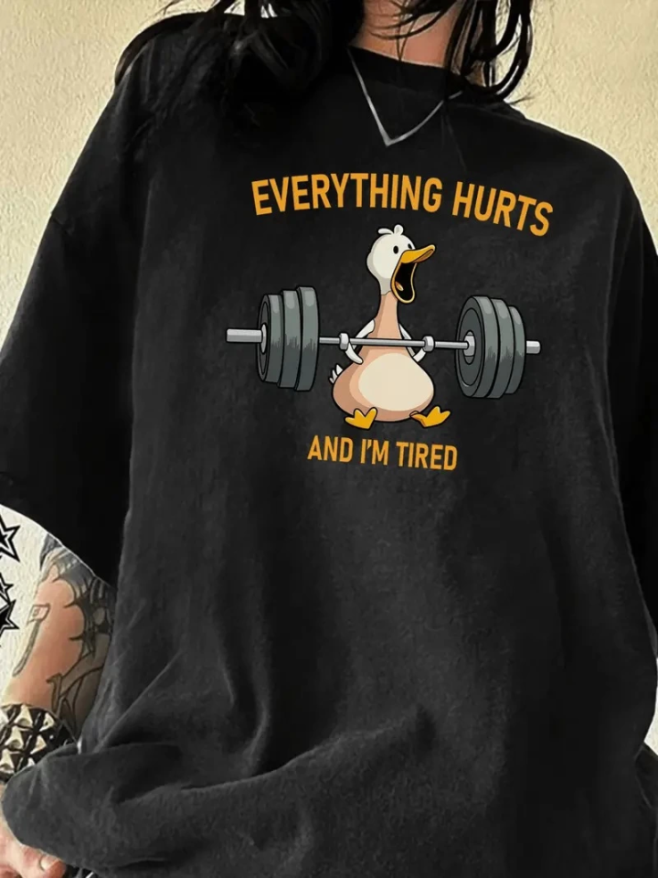 Baskılı Oversize Bisiklet Yaka T-shirt – Siyah