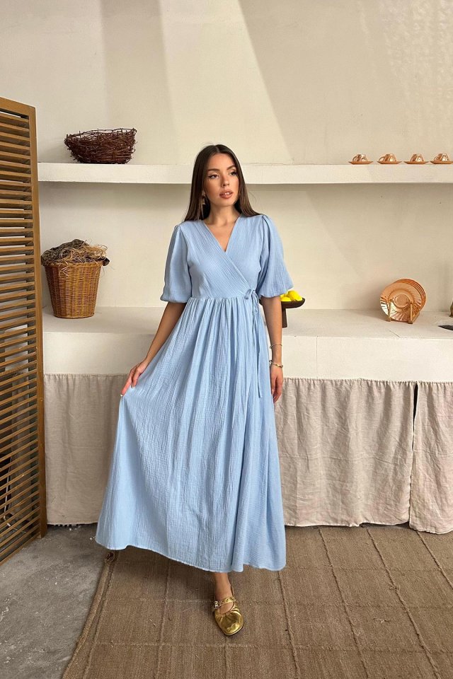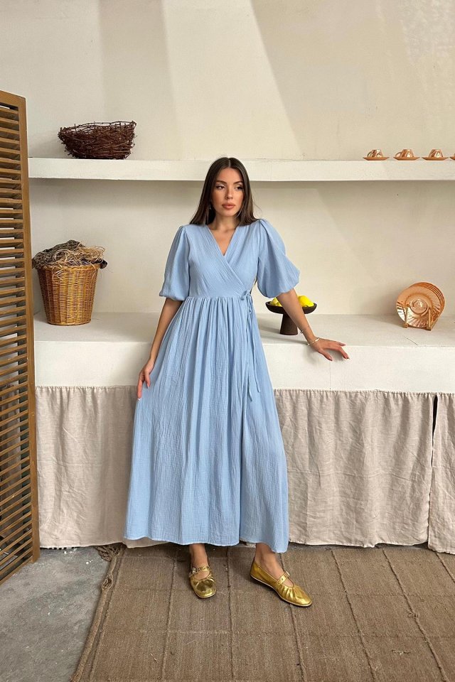 Bebe Mavi Müslin Uzun Elbise