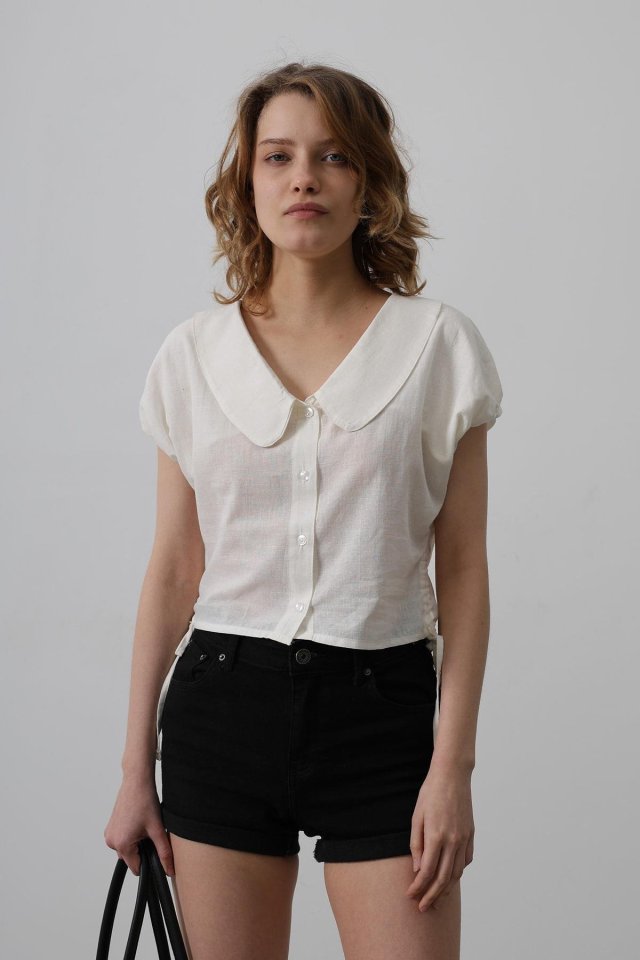 Bebe Yaka Yanları Bağlamalı Bluz – Beyaz