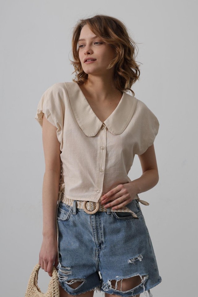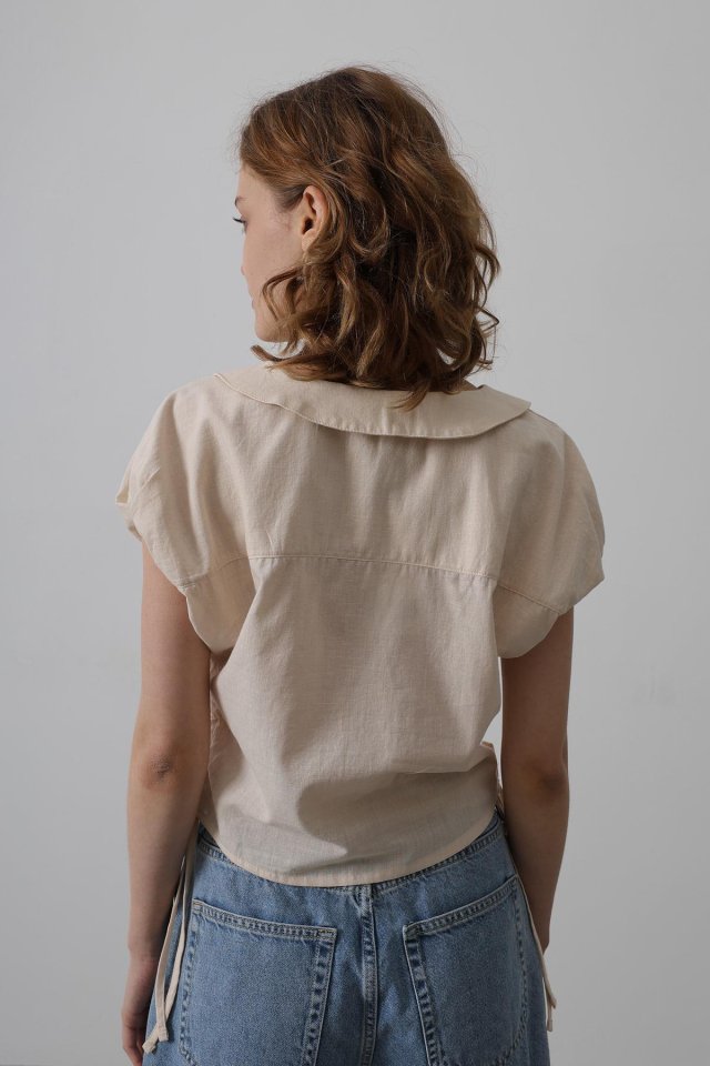 Bebe Yaka Yanları Bağlamalı Bluz – Taş