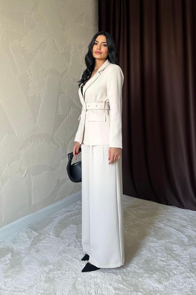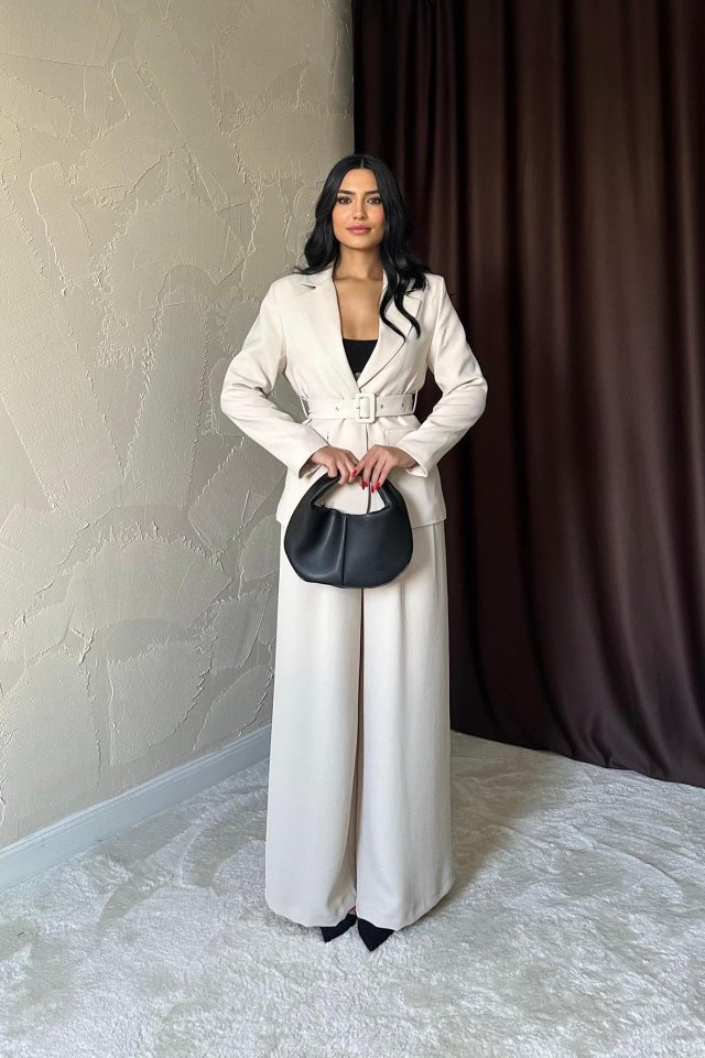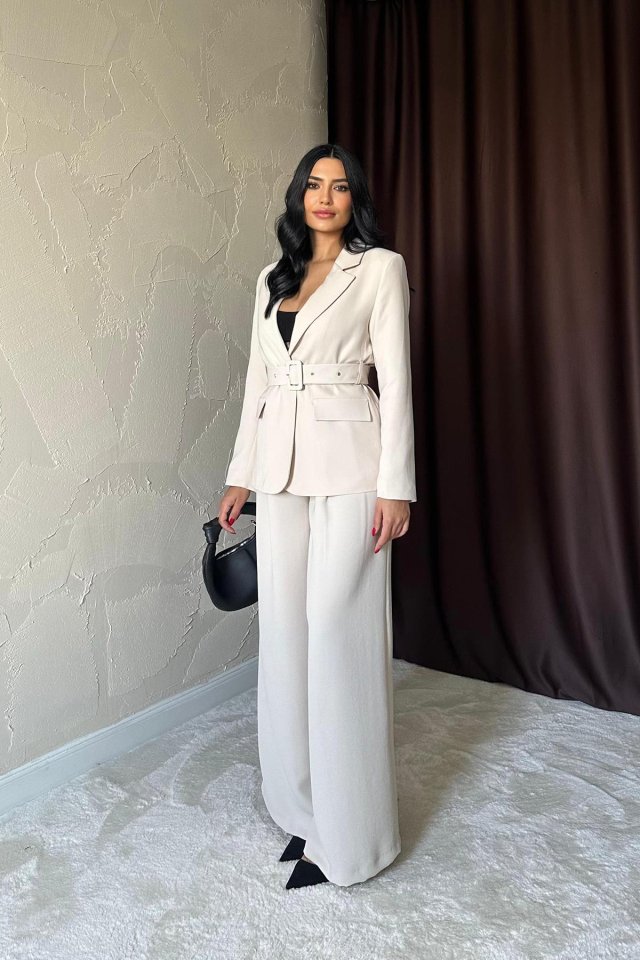 Bej Cep Kapaklı Ve Kemerli Ceket