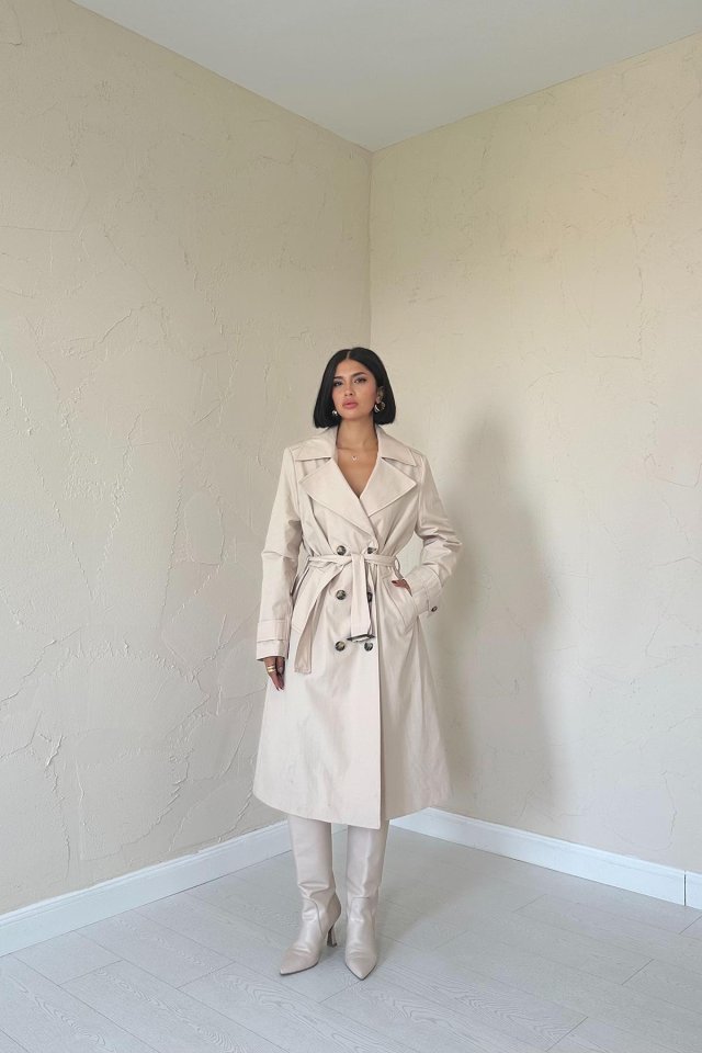 Bej Uzun Kemerli Trençkot