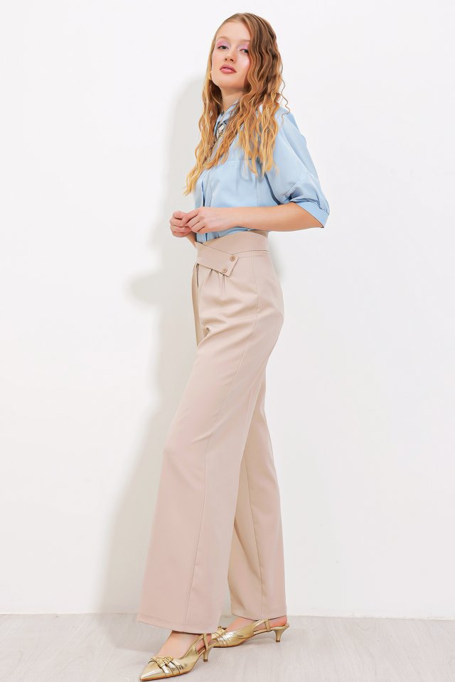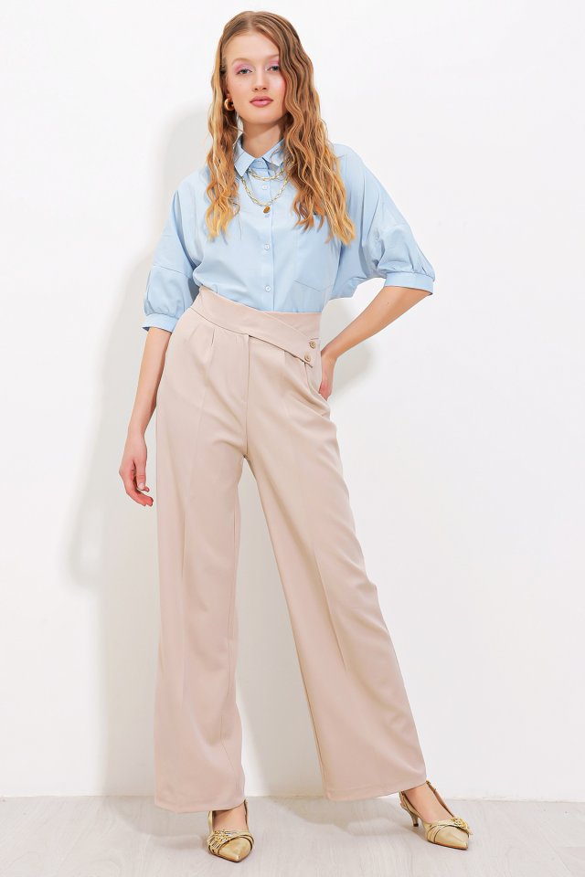 Bej Yüksek Bel Palazzo Pantolon 6646