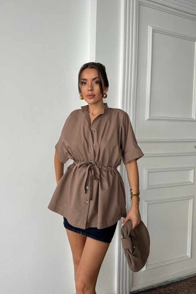 BEL BÜZGÜ DETAYLI POPLİN GÖMLEK – Kahverengi