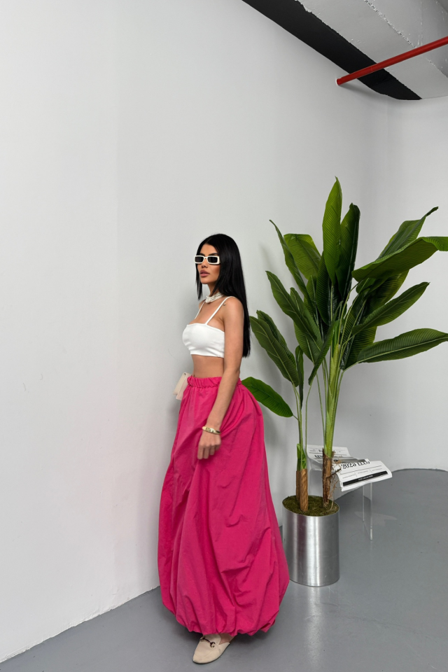 BEL LASTİKLİ BALON ETEK ŞANEL BOY SOFT KUMAŞ – Fuşya