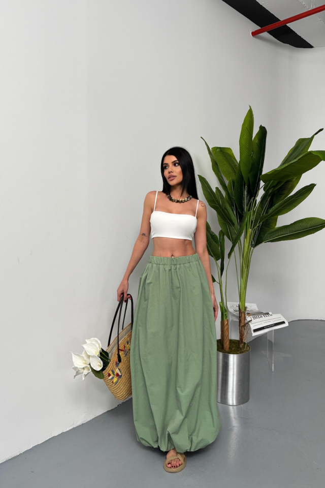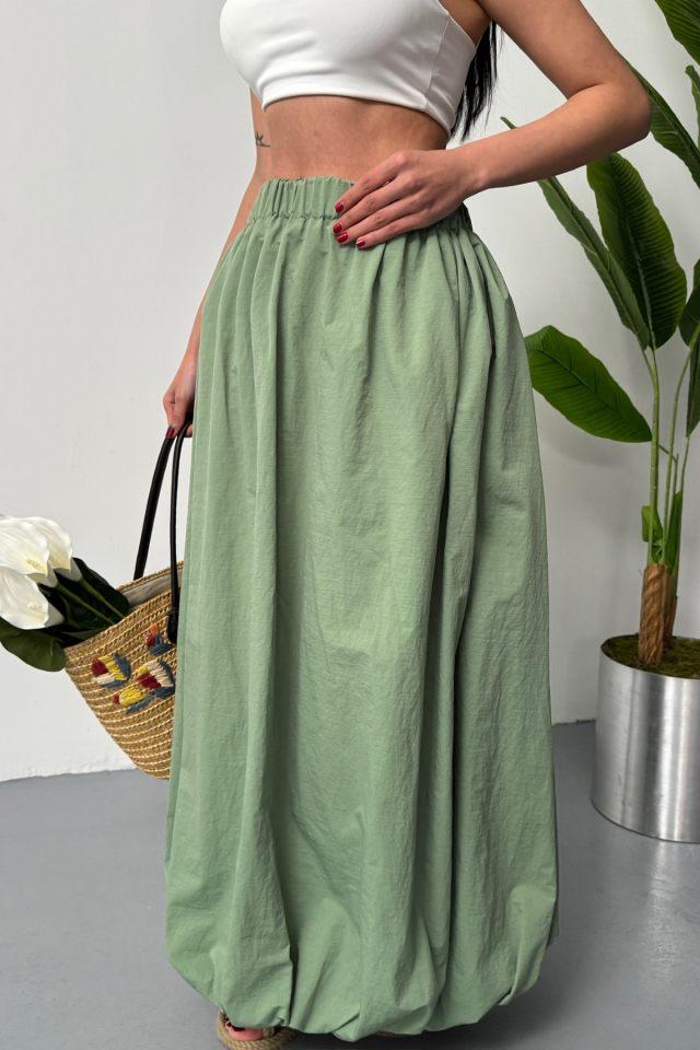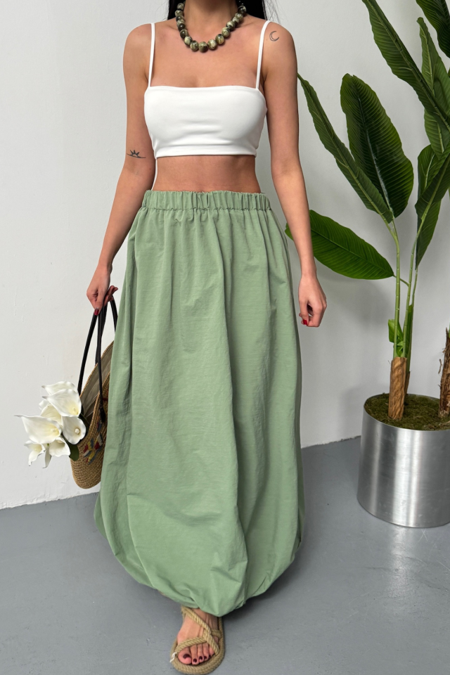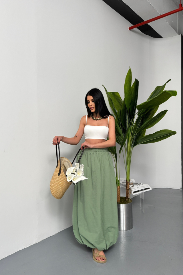 BEL LASTİKLİ BALON ETEK ŞANEL BOY SOFT KUMAŞ – Haki
