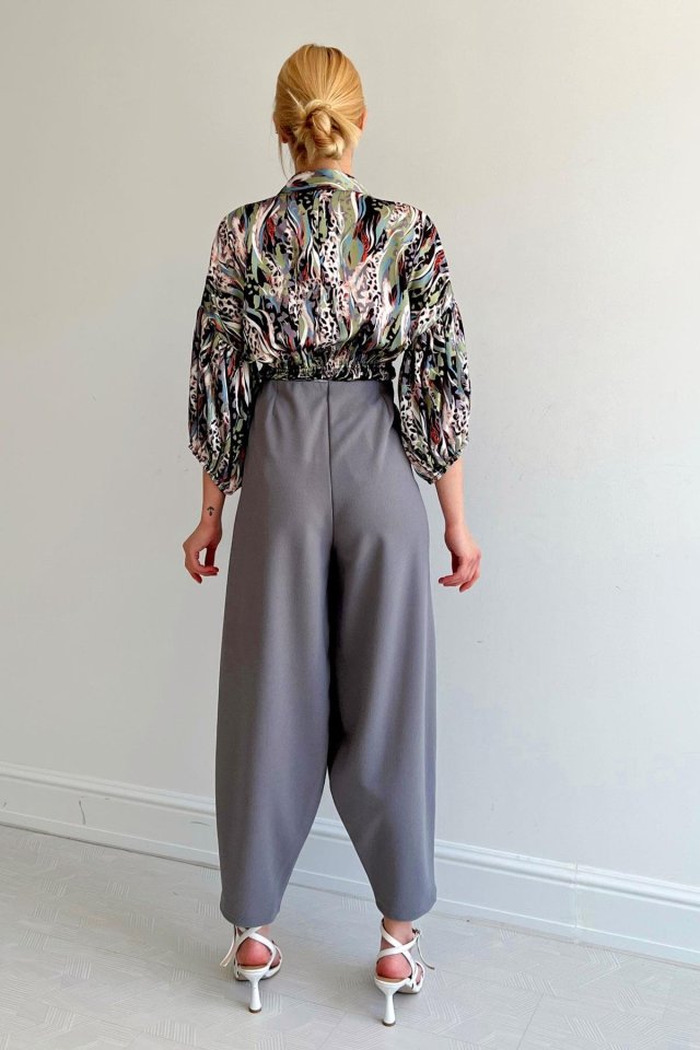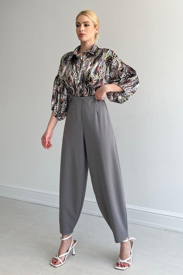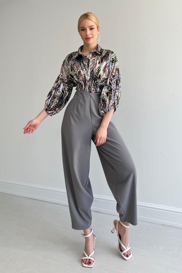 Beli Lastikli Saten Gömlek – Lila