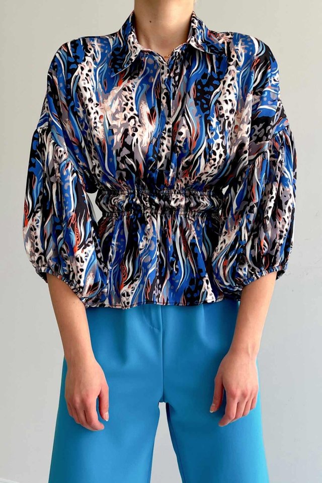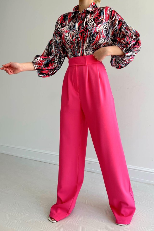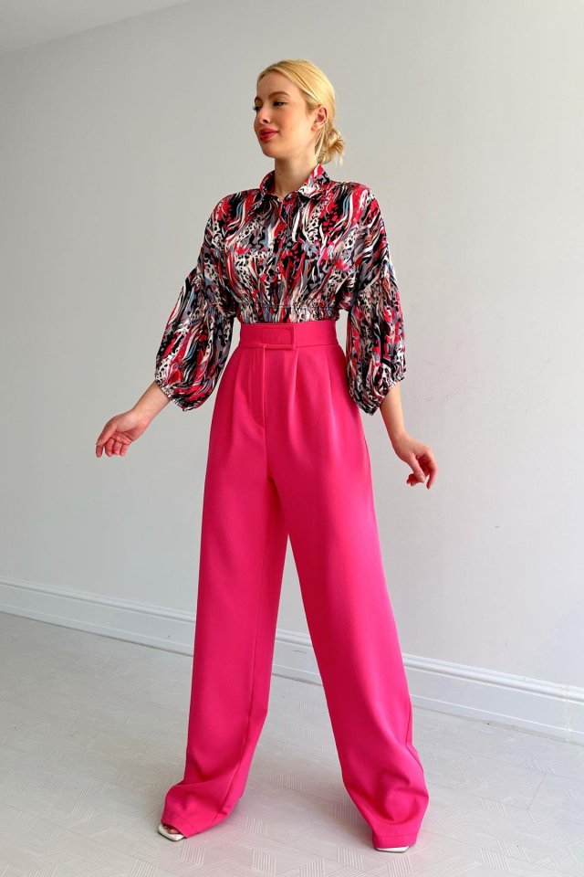 Beli Lastikli Saten Gömlek – Fuşya