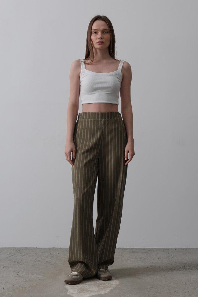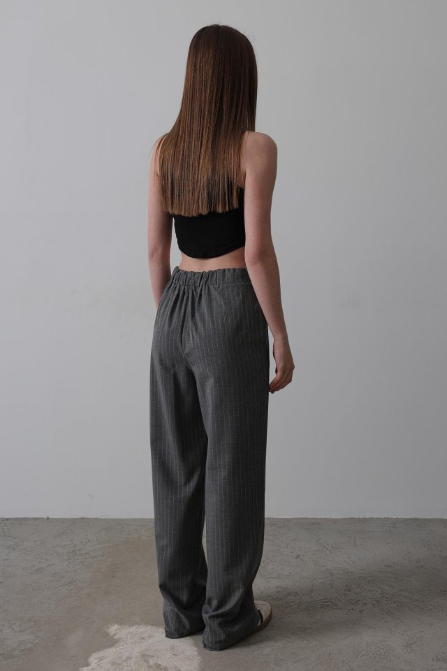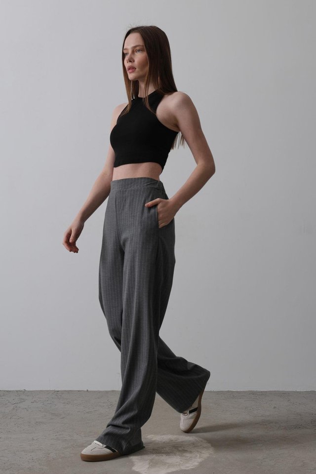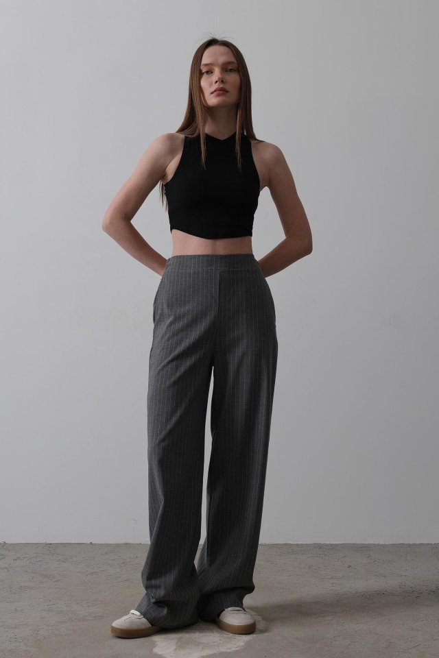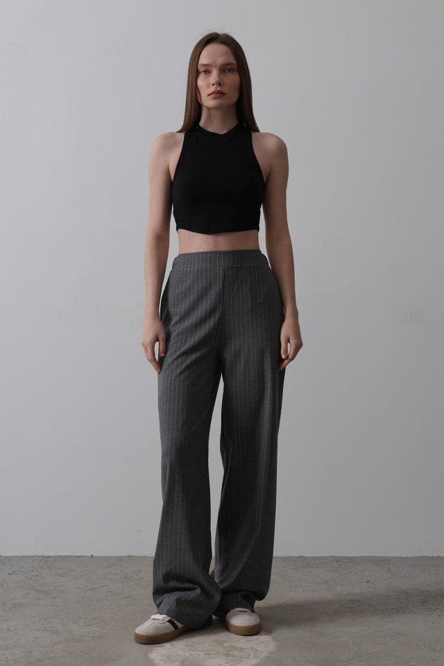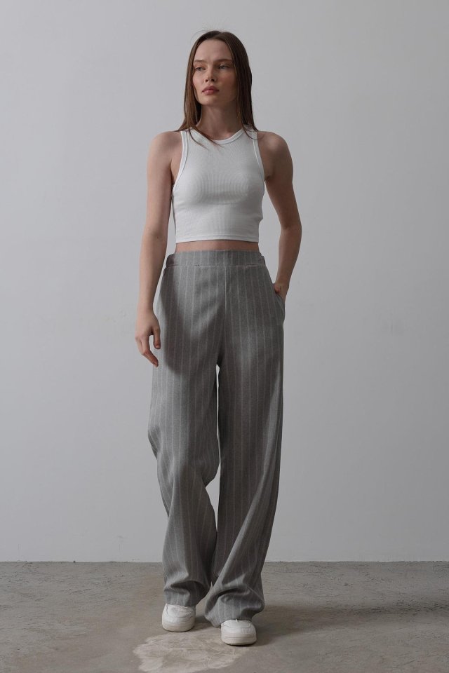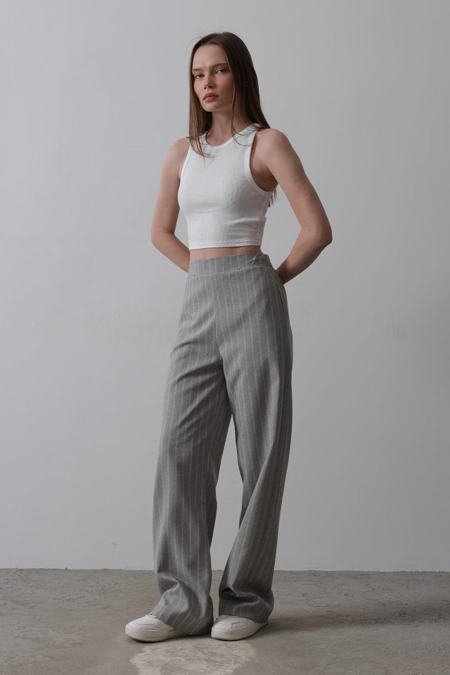 Beli Yarım Lastikli Palazzo Pantolon – Gri-Beyaz