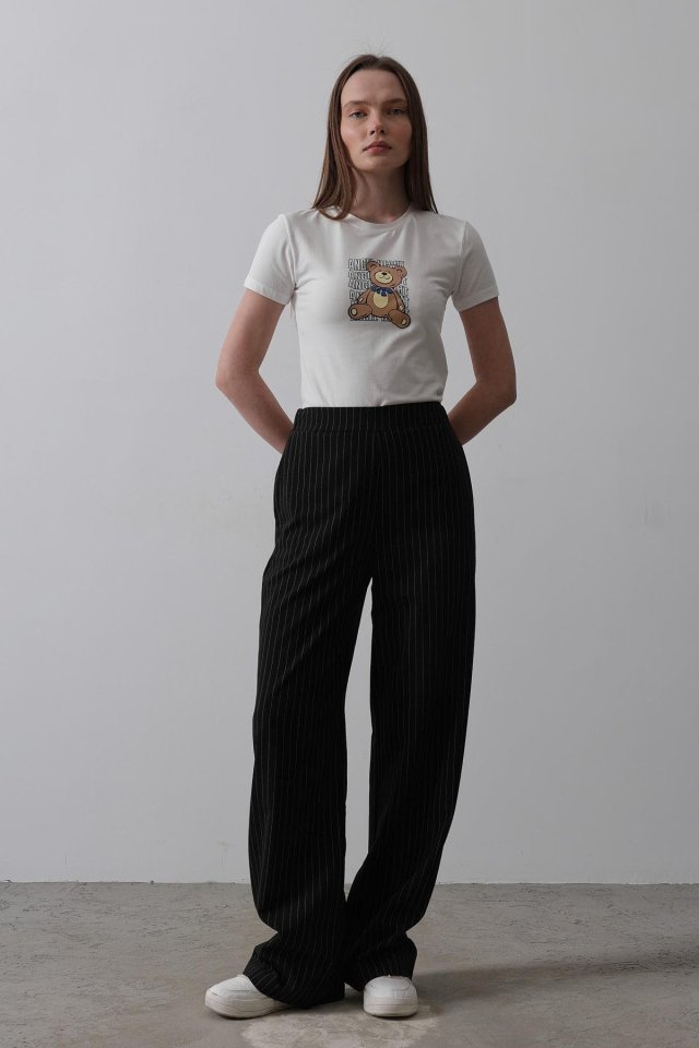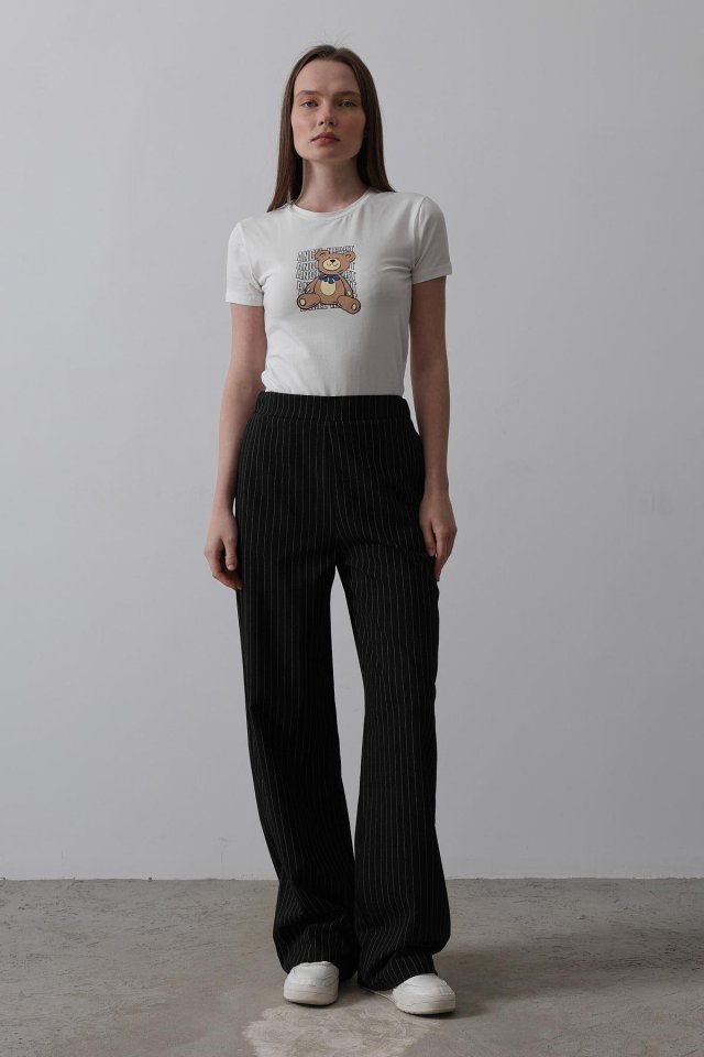 Beli Yarım Lastikli Palazzo Pantolon – Siyah-Beyaz