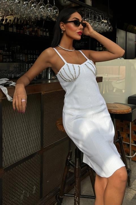 Belina Taş Detaylıı Mini Elbise 2804