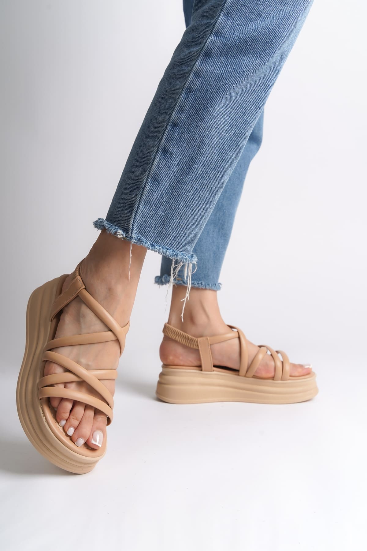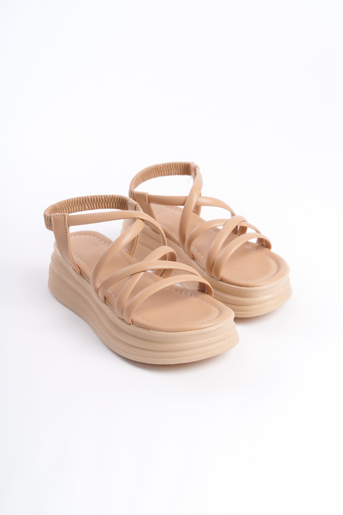 BELLA Lastikli Şerit Detaylı Ortopedik Taban Kadın Sandalet CTT – Ten