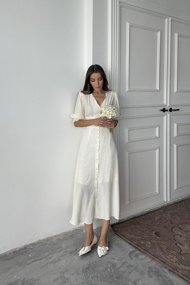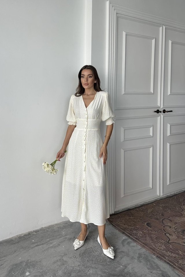 Beyaz Arka Ve Bel Ucu Gipeli Elbise