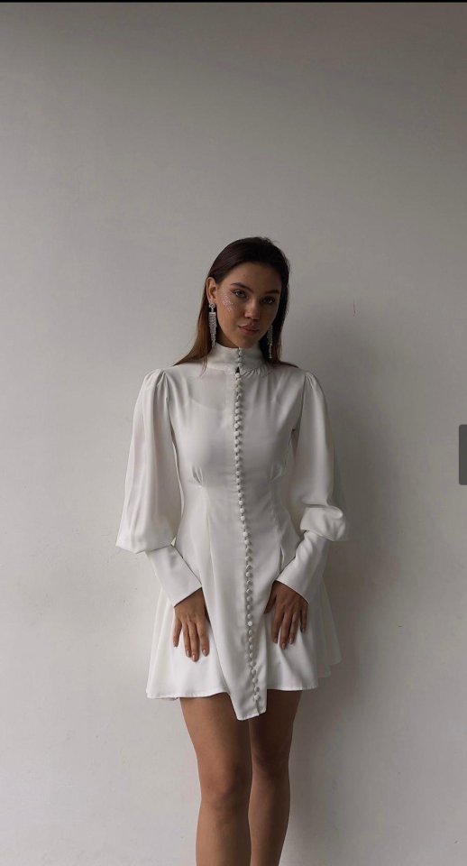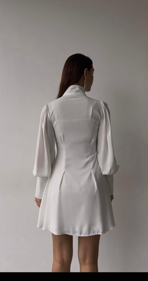 Beyaz Düğmeli Elbise