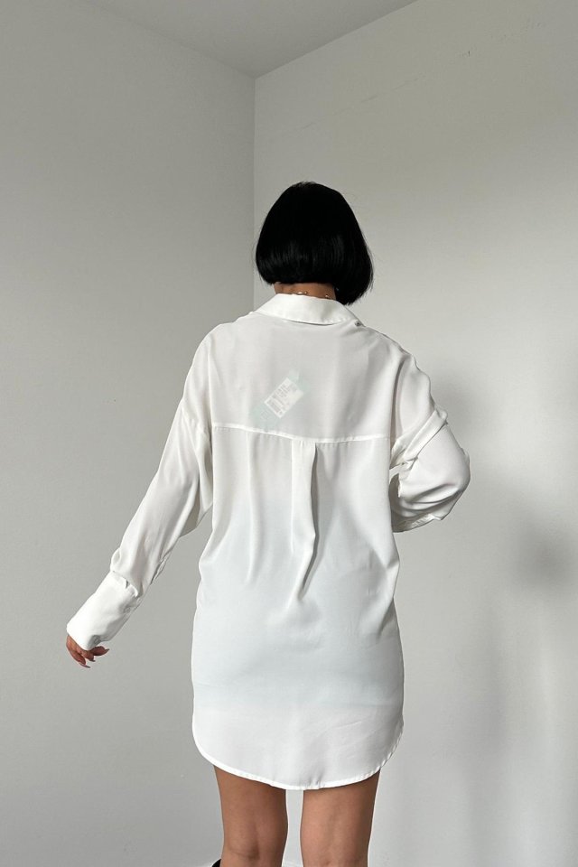 Beyaz Jesica Parçalı Bağcıklı Gömlek