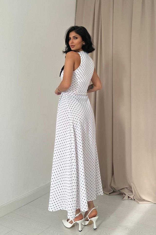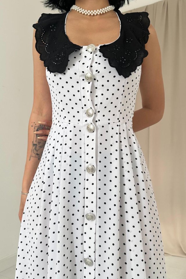 Beyaz Puantiyeli Bebe Yaka Elbise