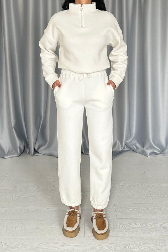 Beyaz Üç İplik Eşofman Takım