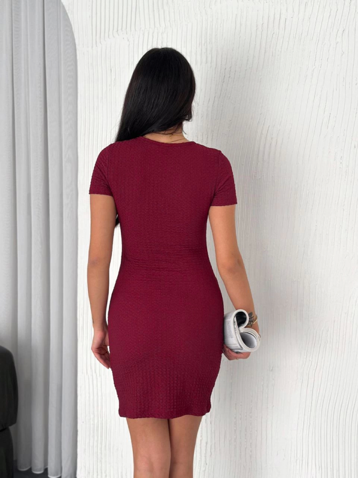 Bisiklet Yaka Kısa Kol Likralı Elbise – Bordo