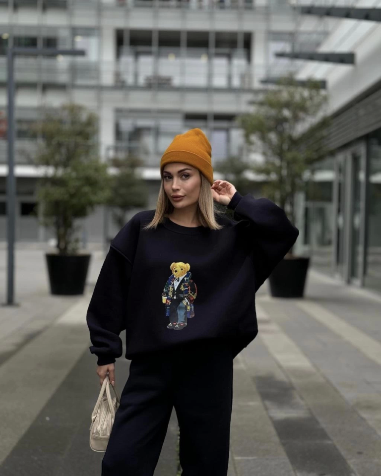 Bisiklet Yaka Üç İplik Sweat Takım – Siyah