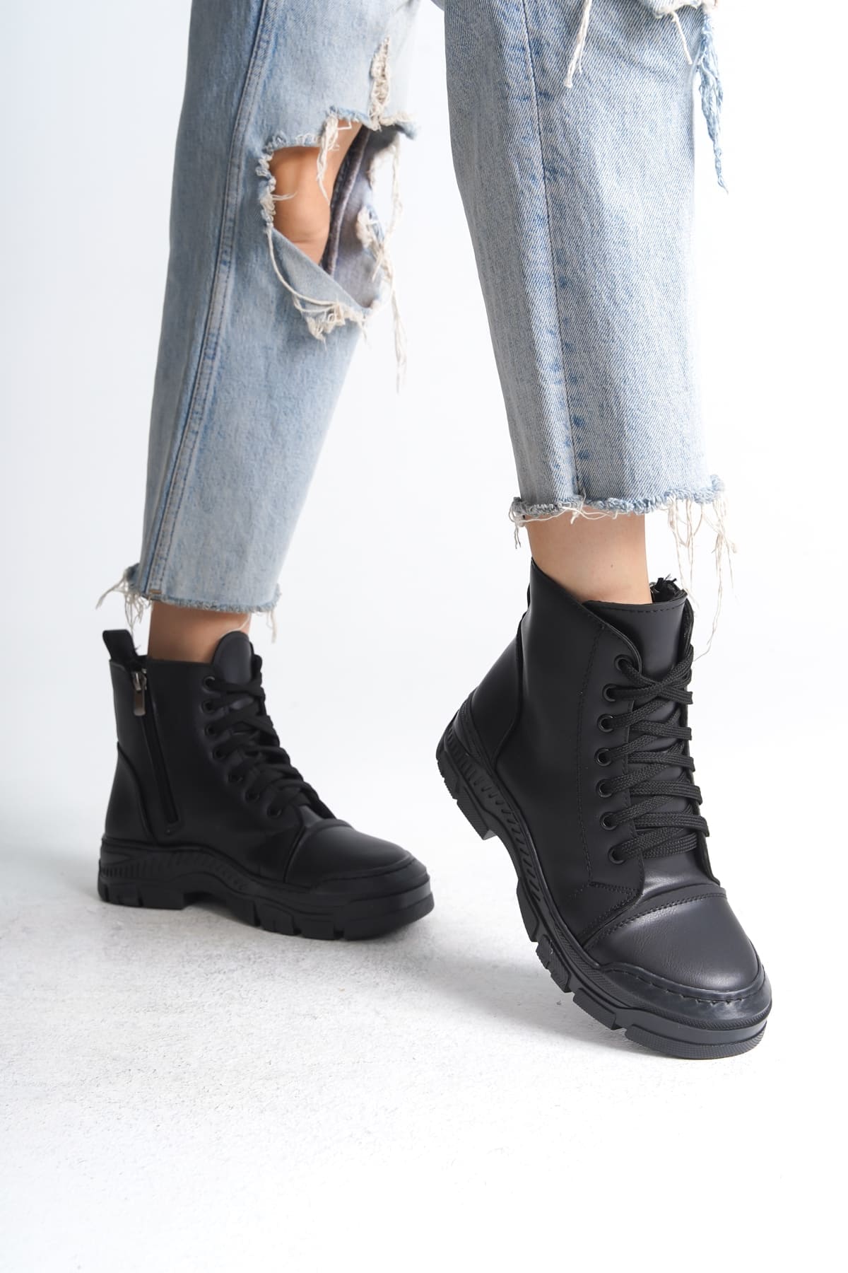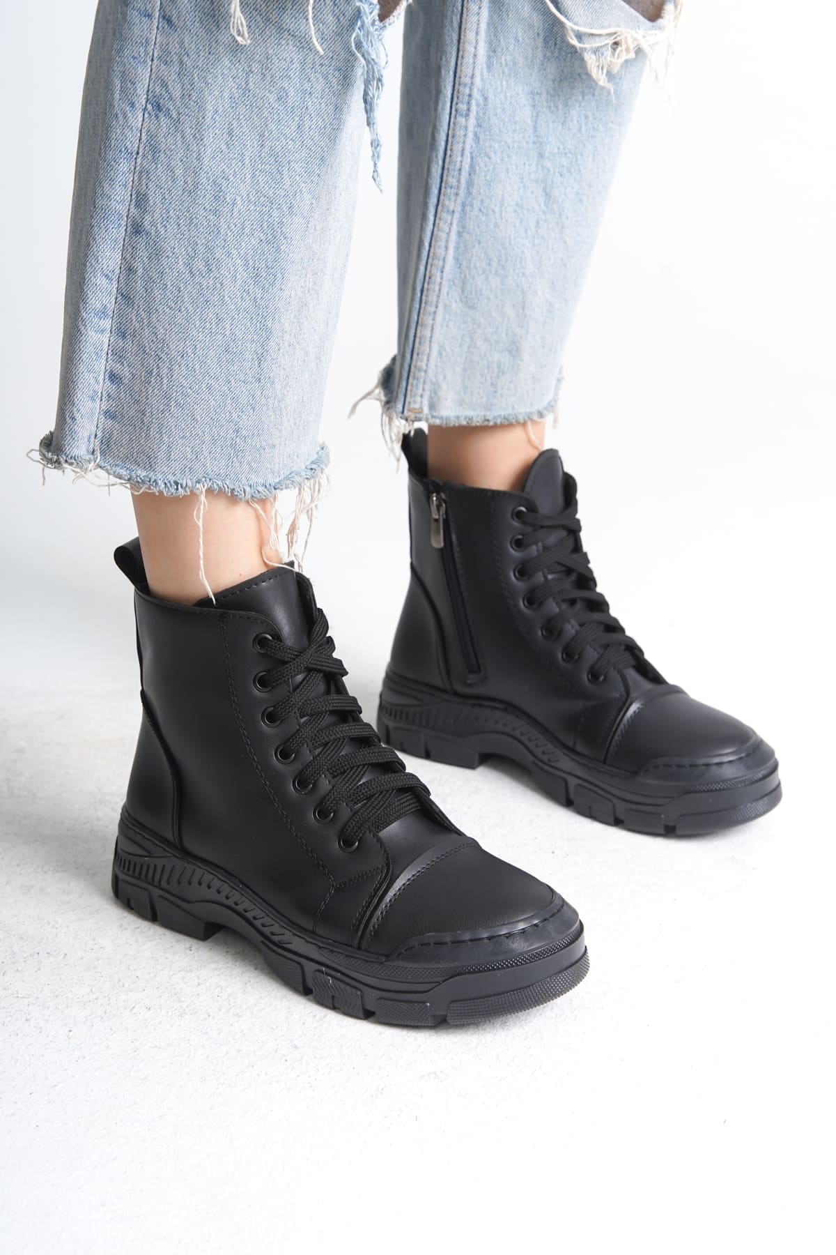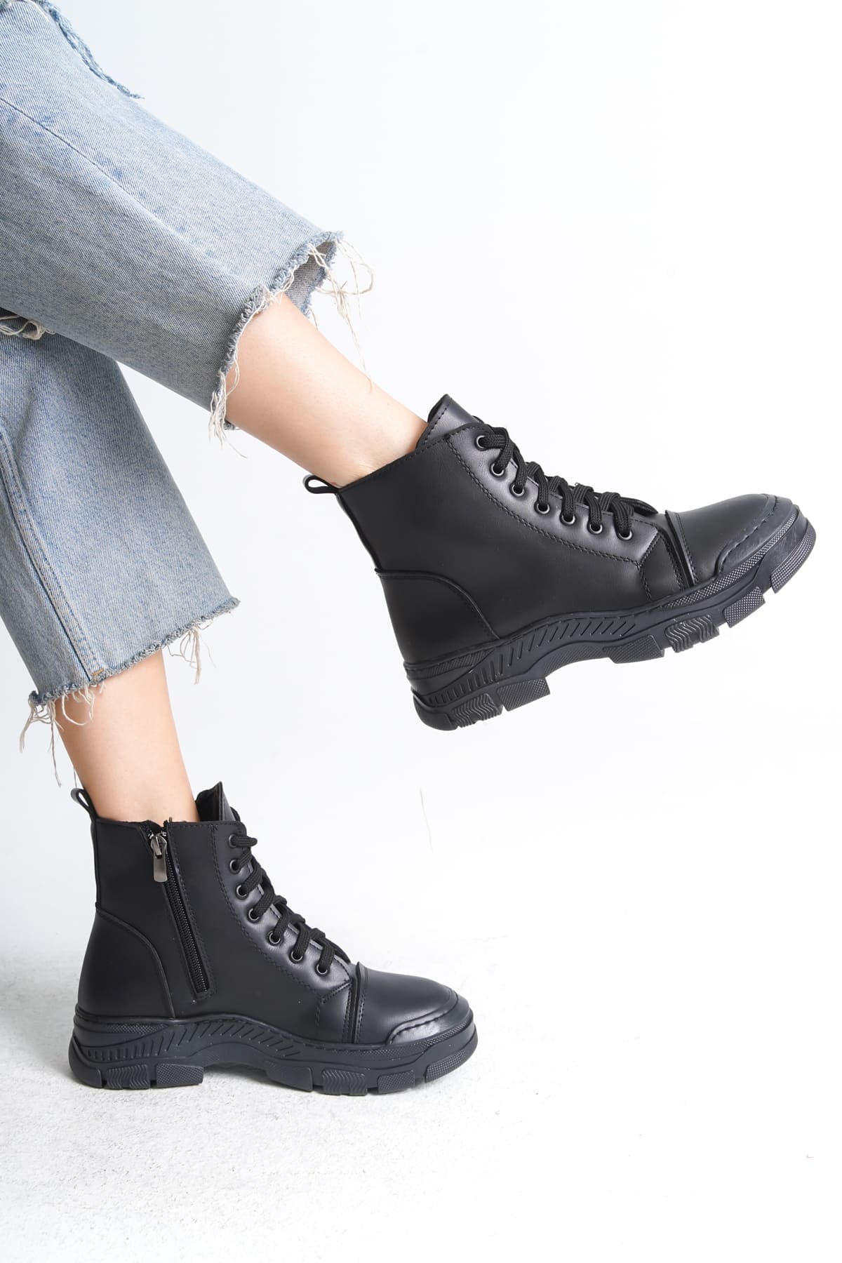BLOOM Bağcıklı Fermuarlı Ortopedik Taban Kadın Bot CST – Siyah