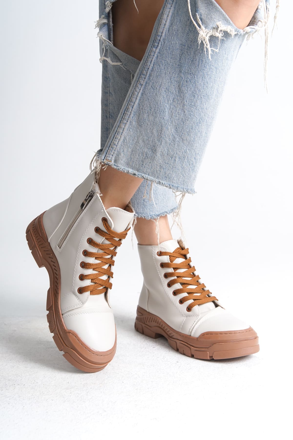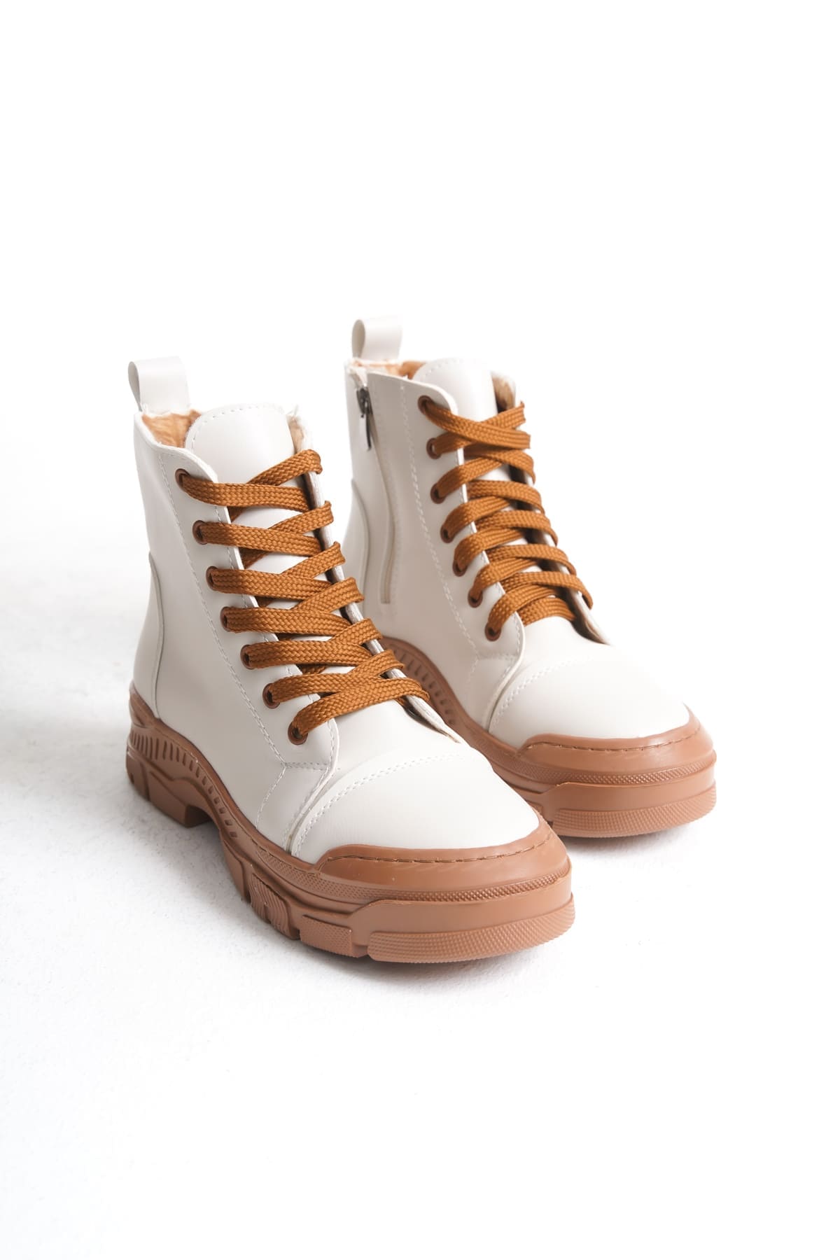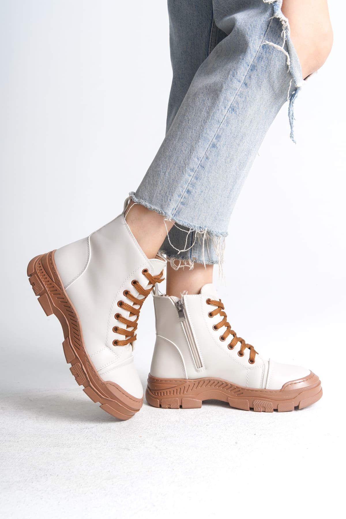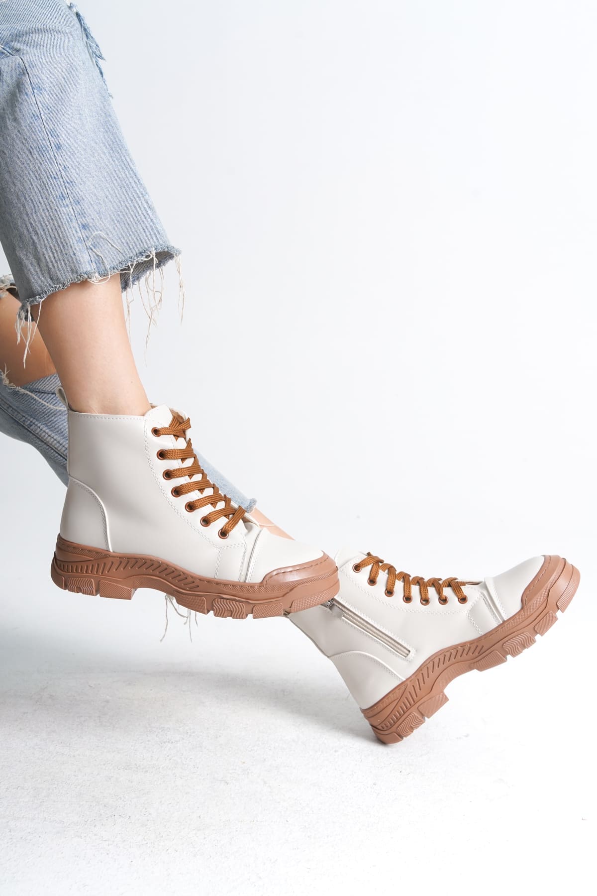 BLOOM Bağcıklı Fermuarlı Ortopedik Taban Kadın Bot CTT – Krem