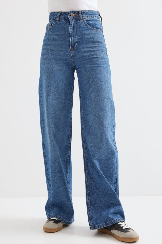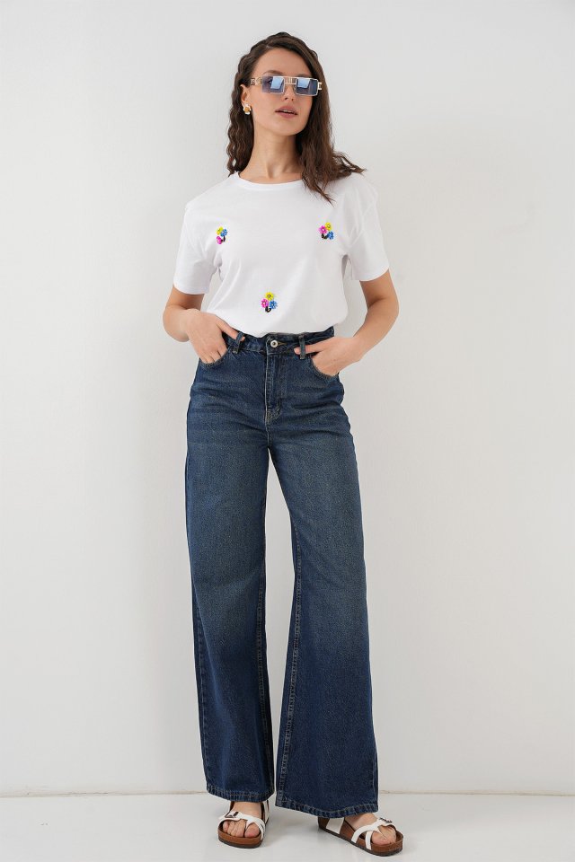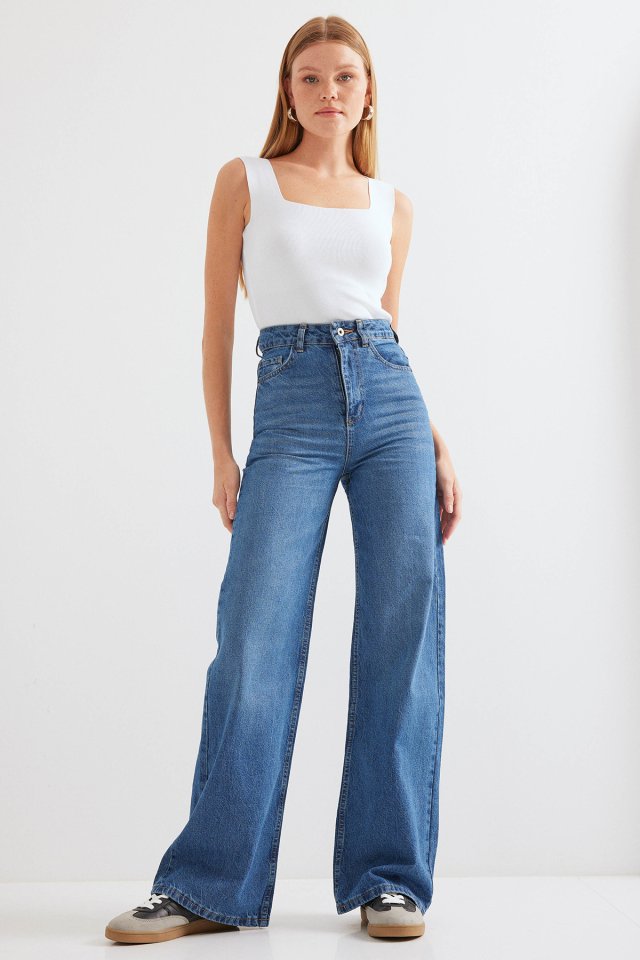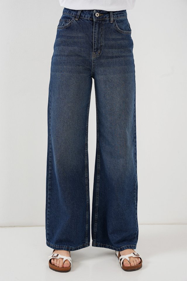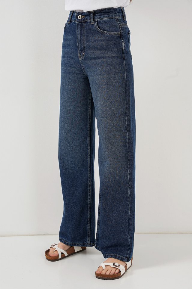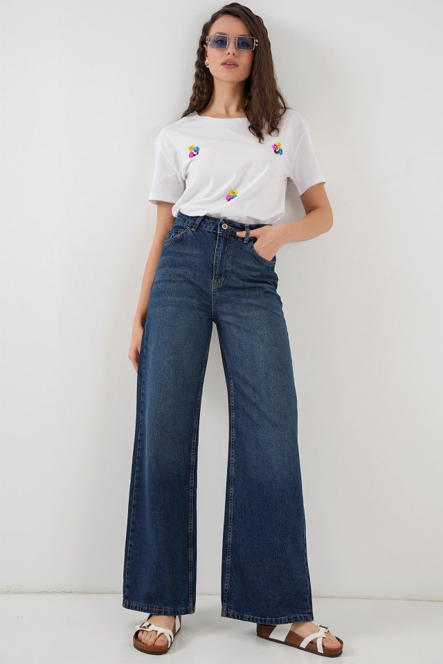 Bol Paça Yüksek Bel Palazzo Kot Pantolon 6656 – Lacivert
