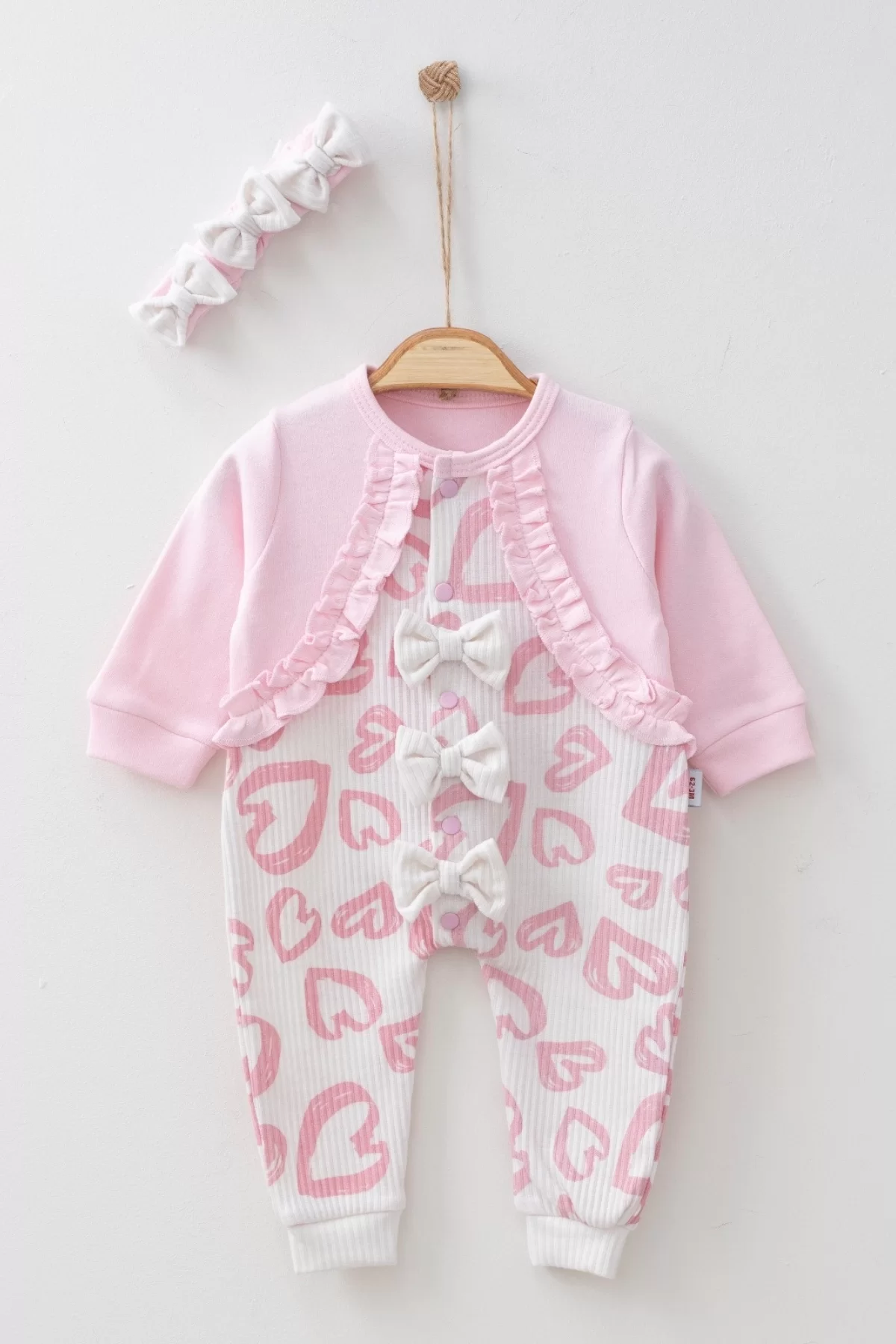 Bolerolu Kalp Desenli % 100 Pamuk Kız Bebek Tulum.