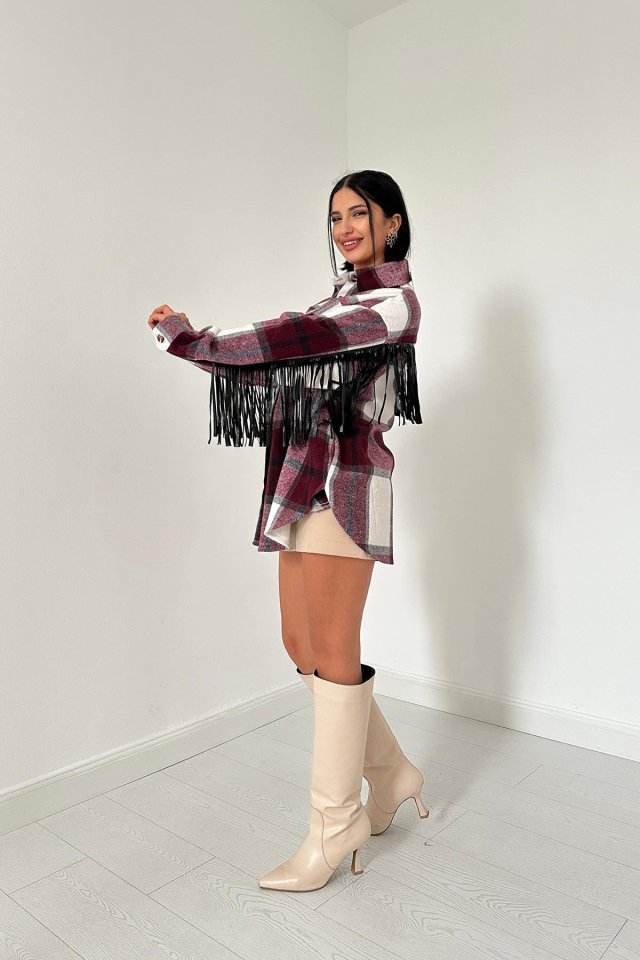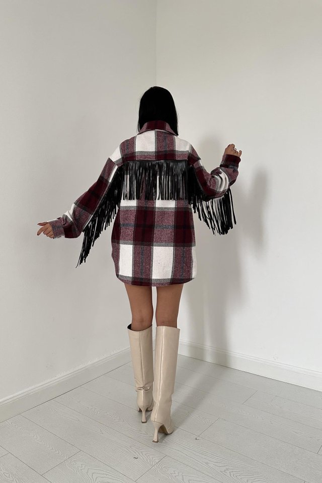 Bordo Arkası Püsküllü Gömlek