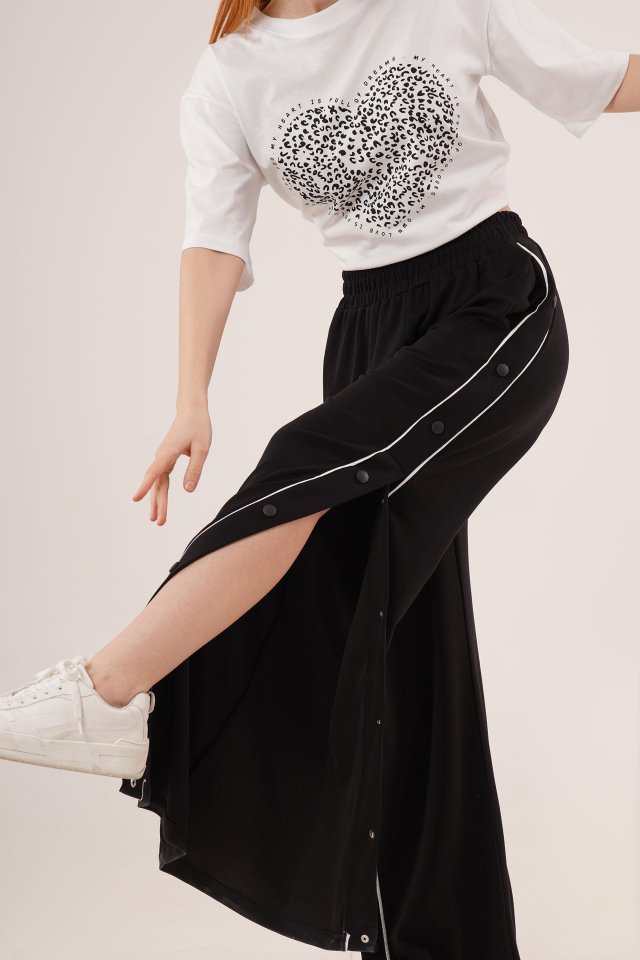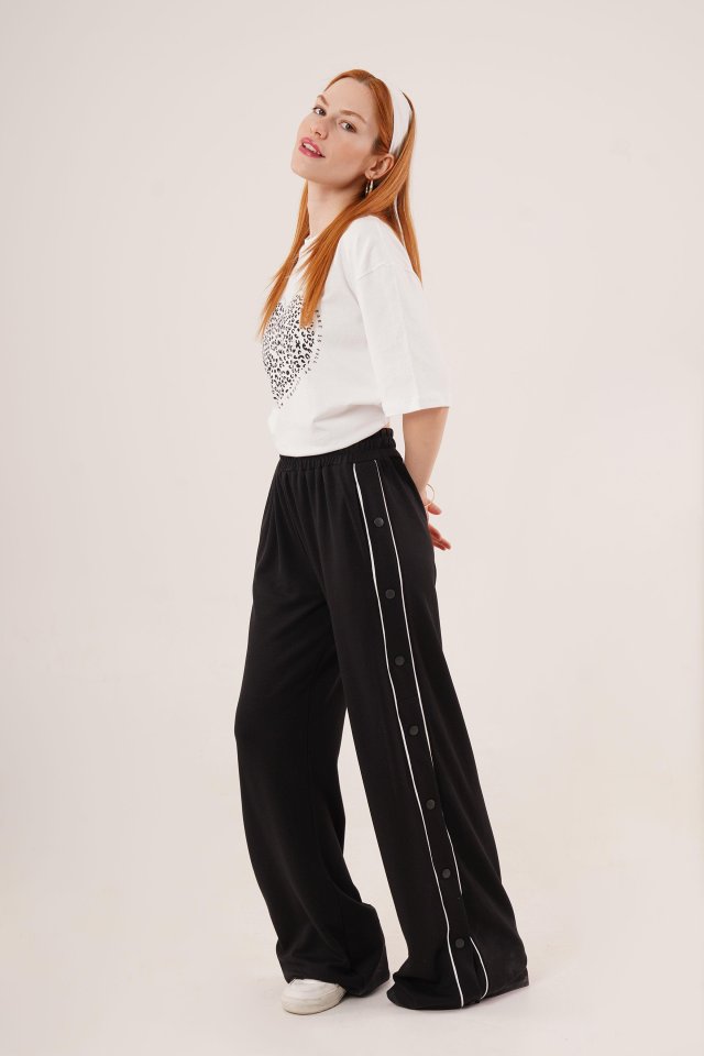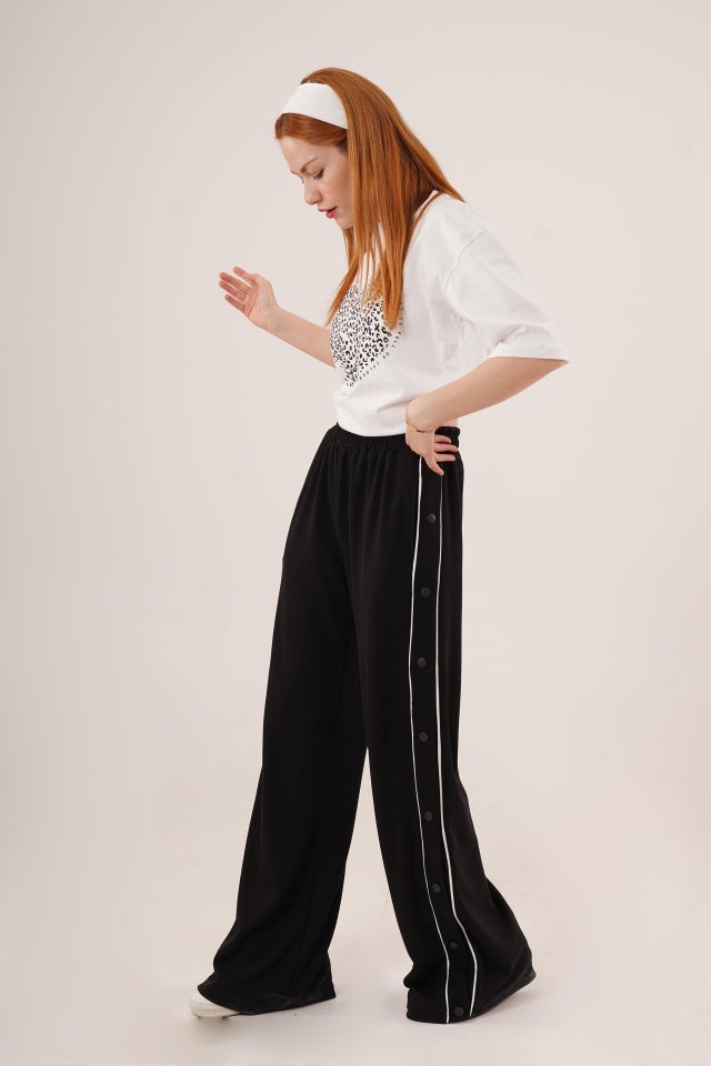 Boydan Çıtçıtlı Bel Lastikli Geniş Paça Siyah Eşofman