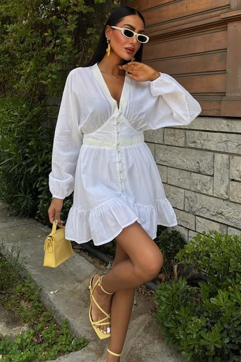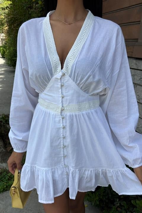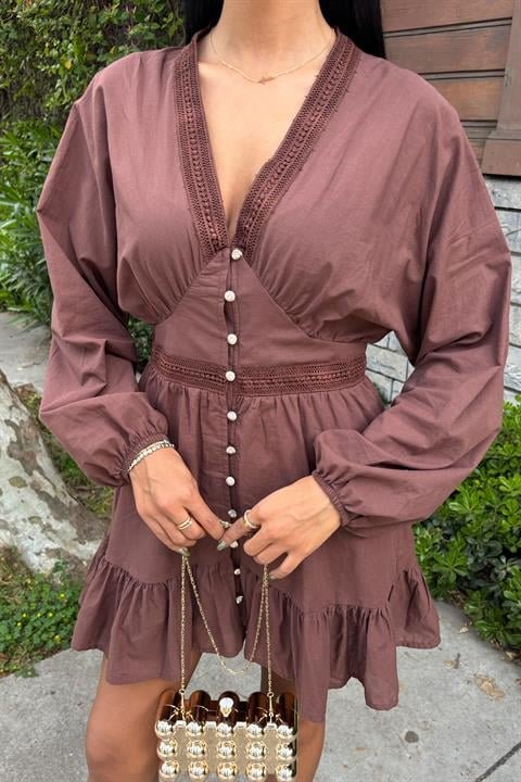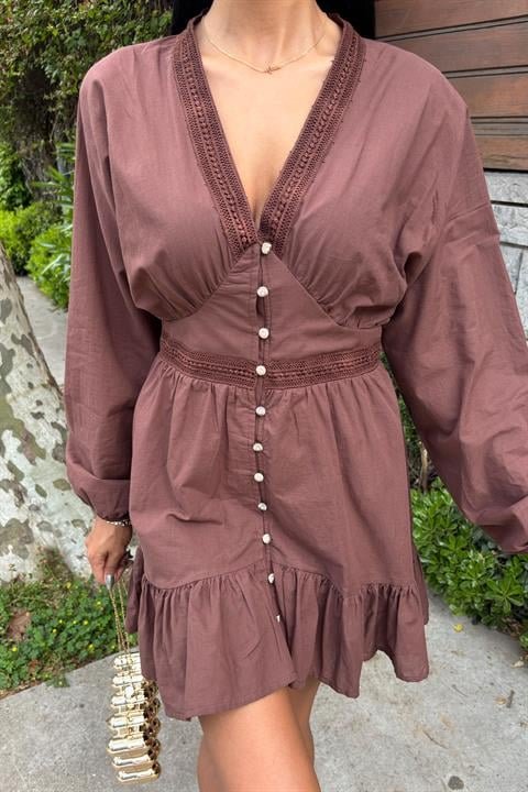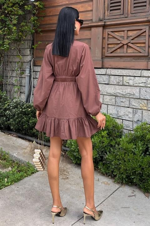 Brode Şeritli Eteği Fırfırlı Elbise 2897