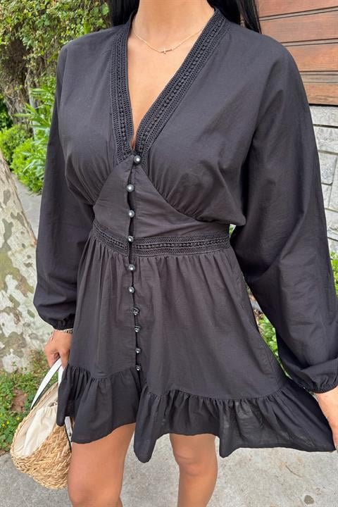 Brode Şeritli Eteği Fırfırlı Elbise 2897