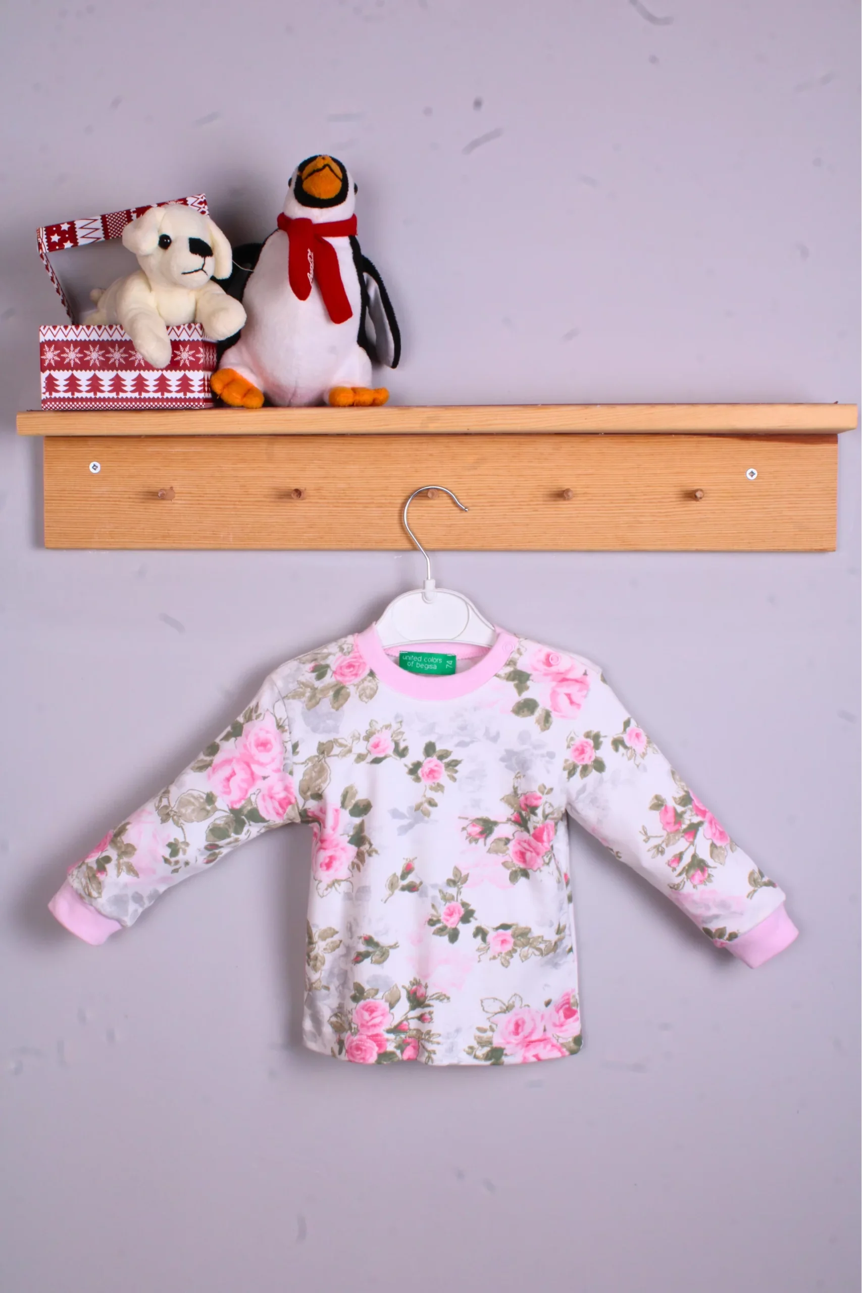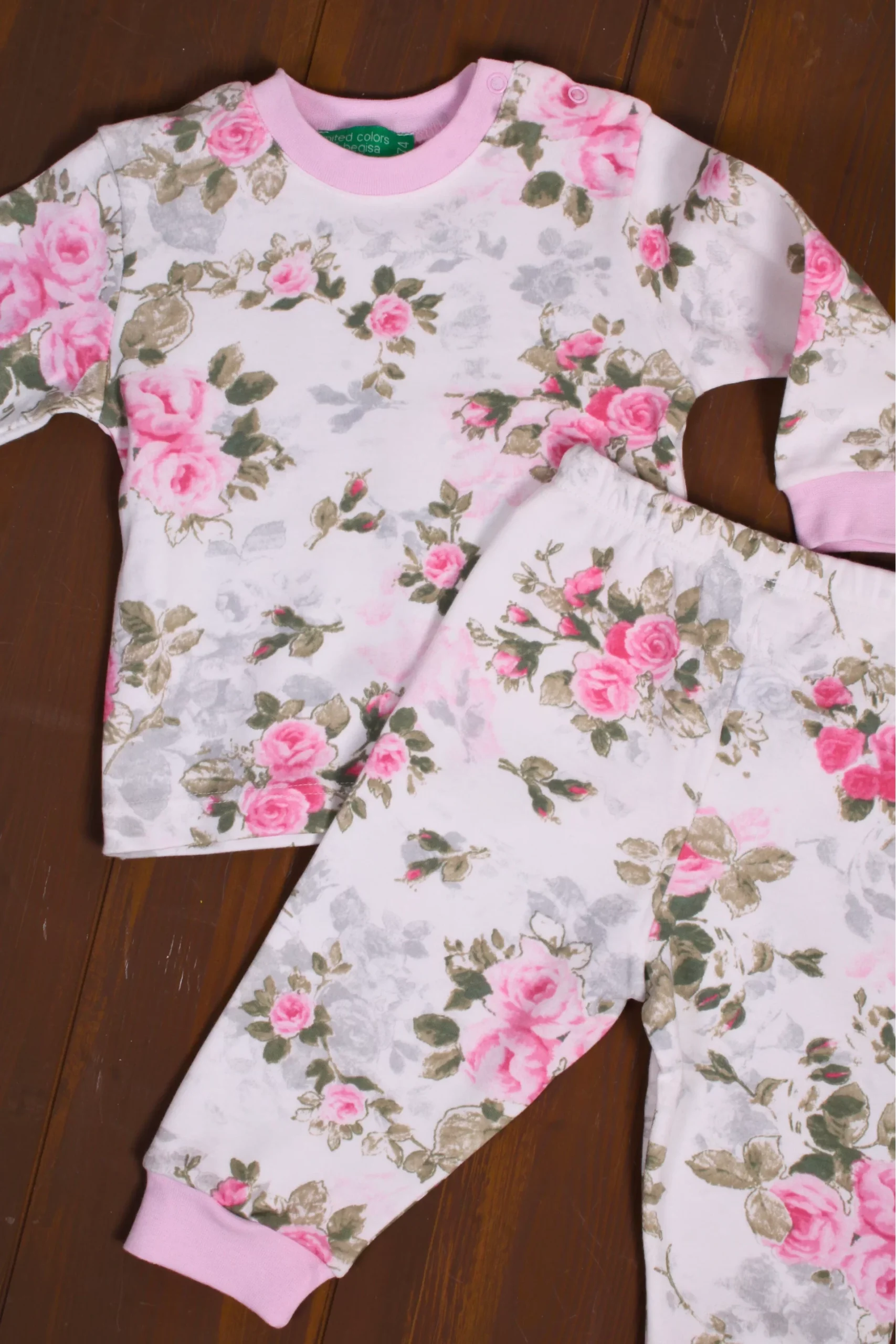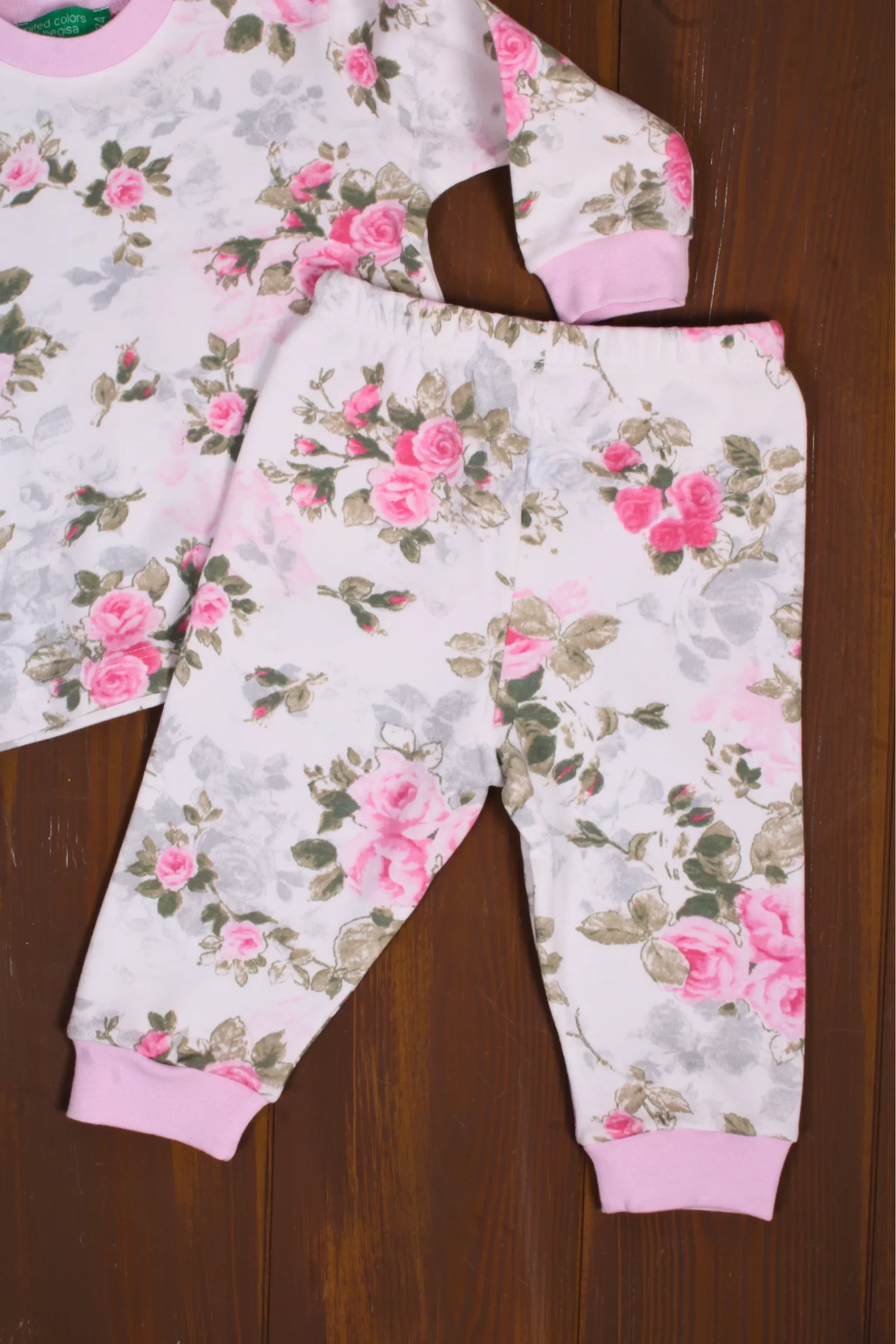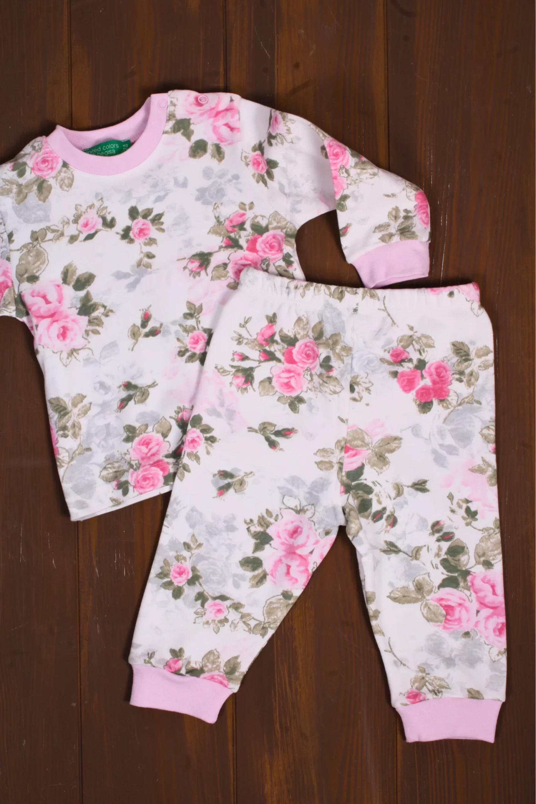 Büyük Çiçek Desenli Kız Bebek Eşofman Takımı %100 Pamuk